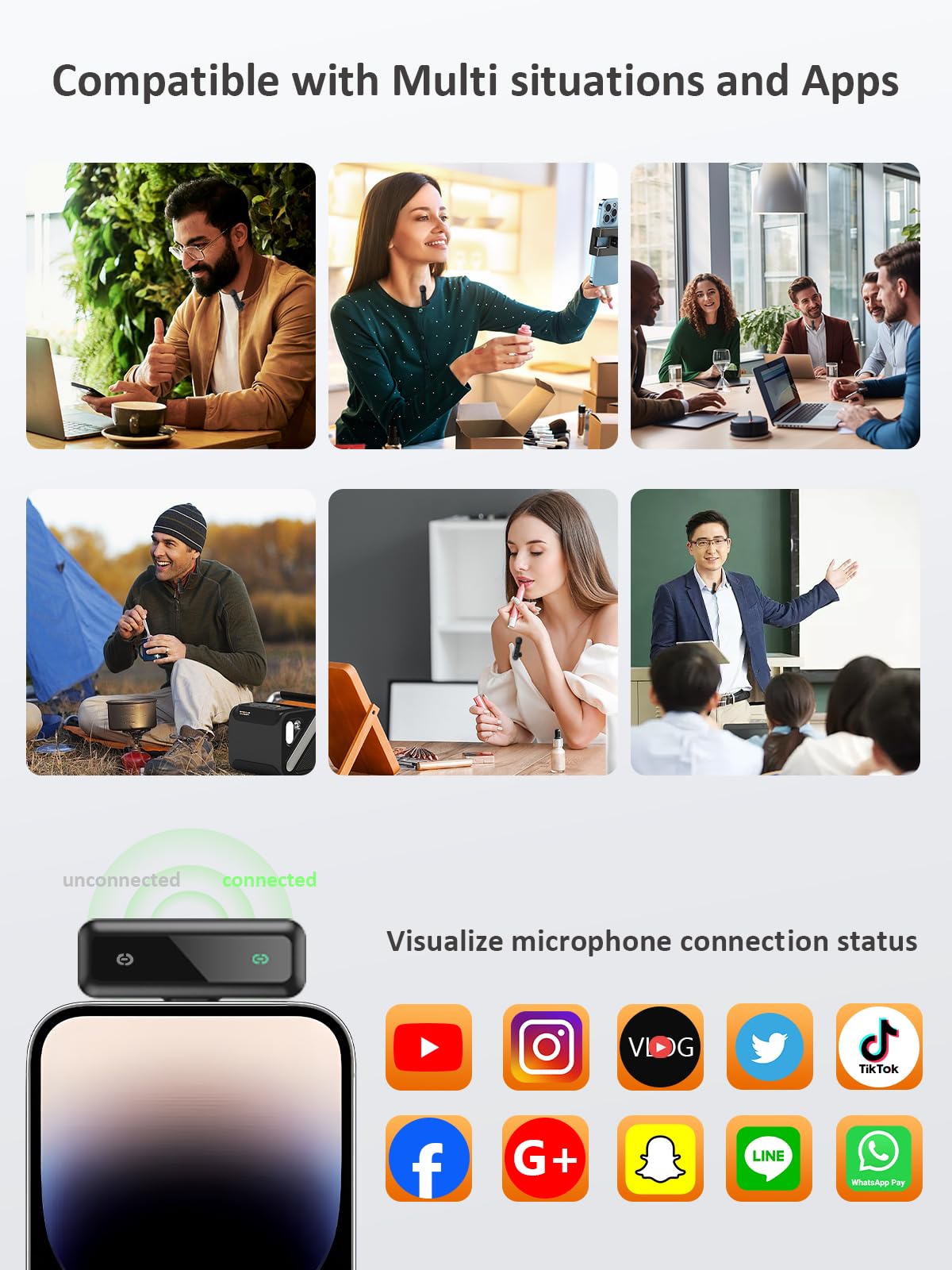 Remote Audio Transmission: Tiny Mic Offers 20m Transmission Via 2.4 Ghz, And 0.05S Audio-Video Delay Avoids The Post-Correction Work. Ideal For Larger Frame Size Recordings On Platforms Like Youtube And Tiktok. Note: Cannot Be Used For Calling Type Apps