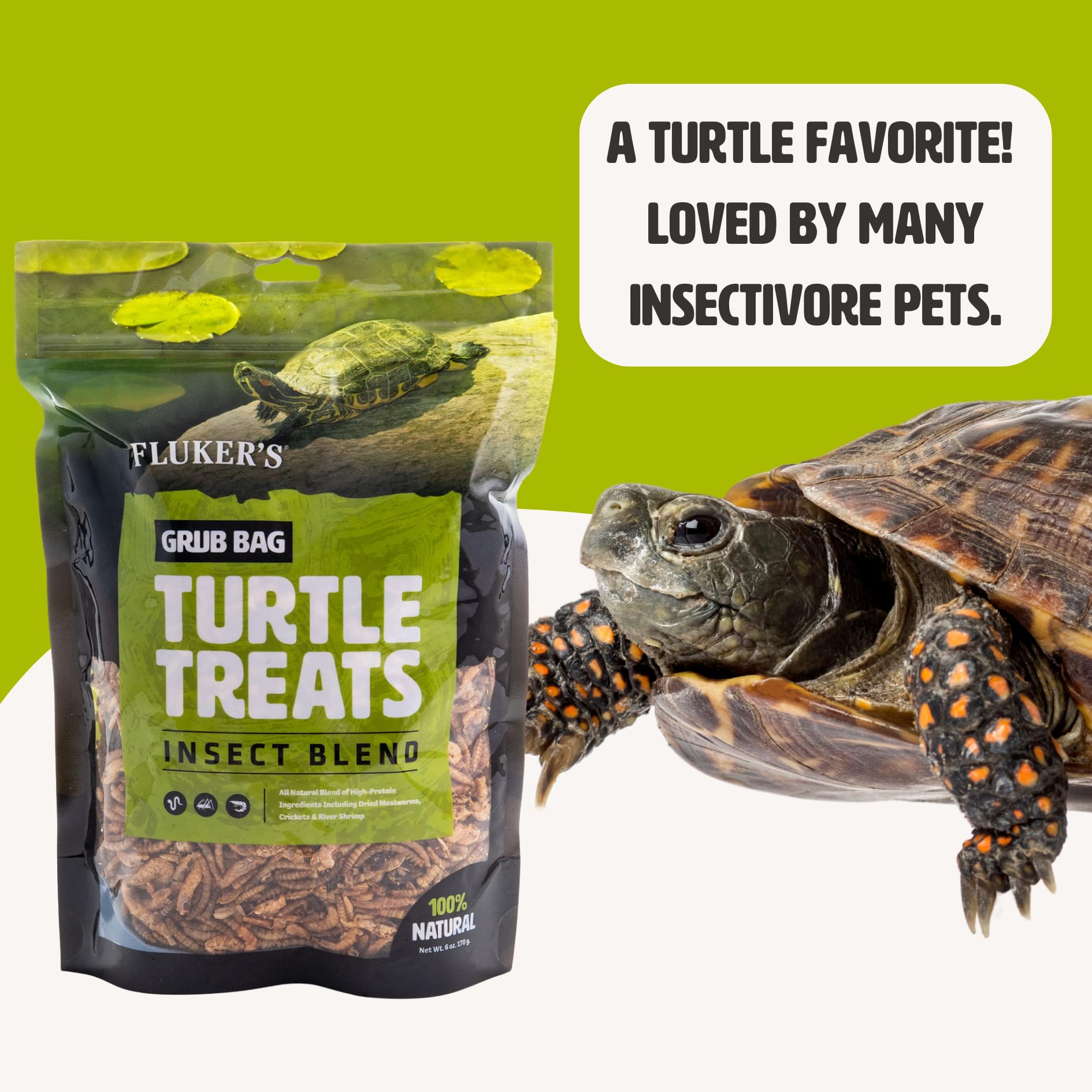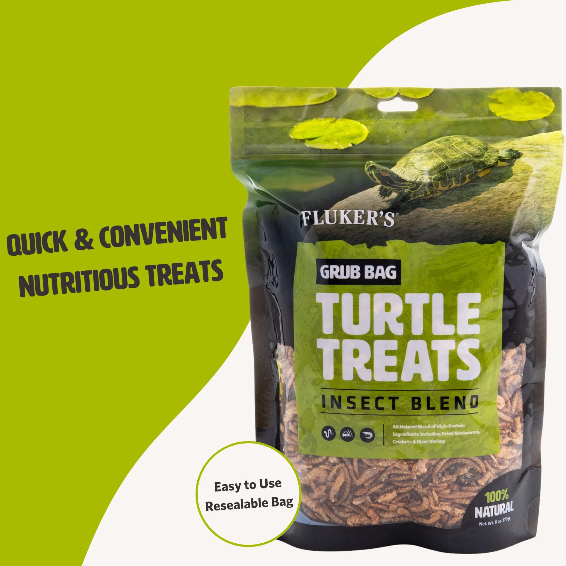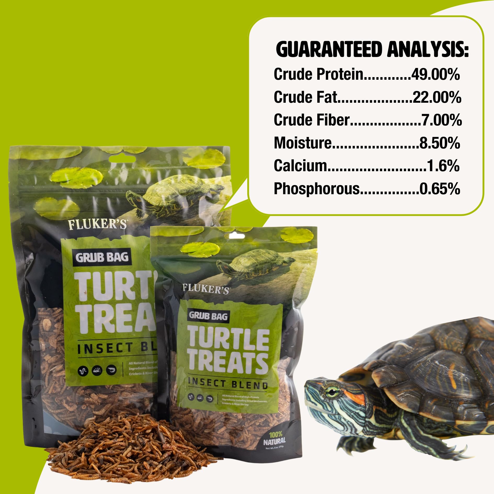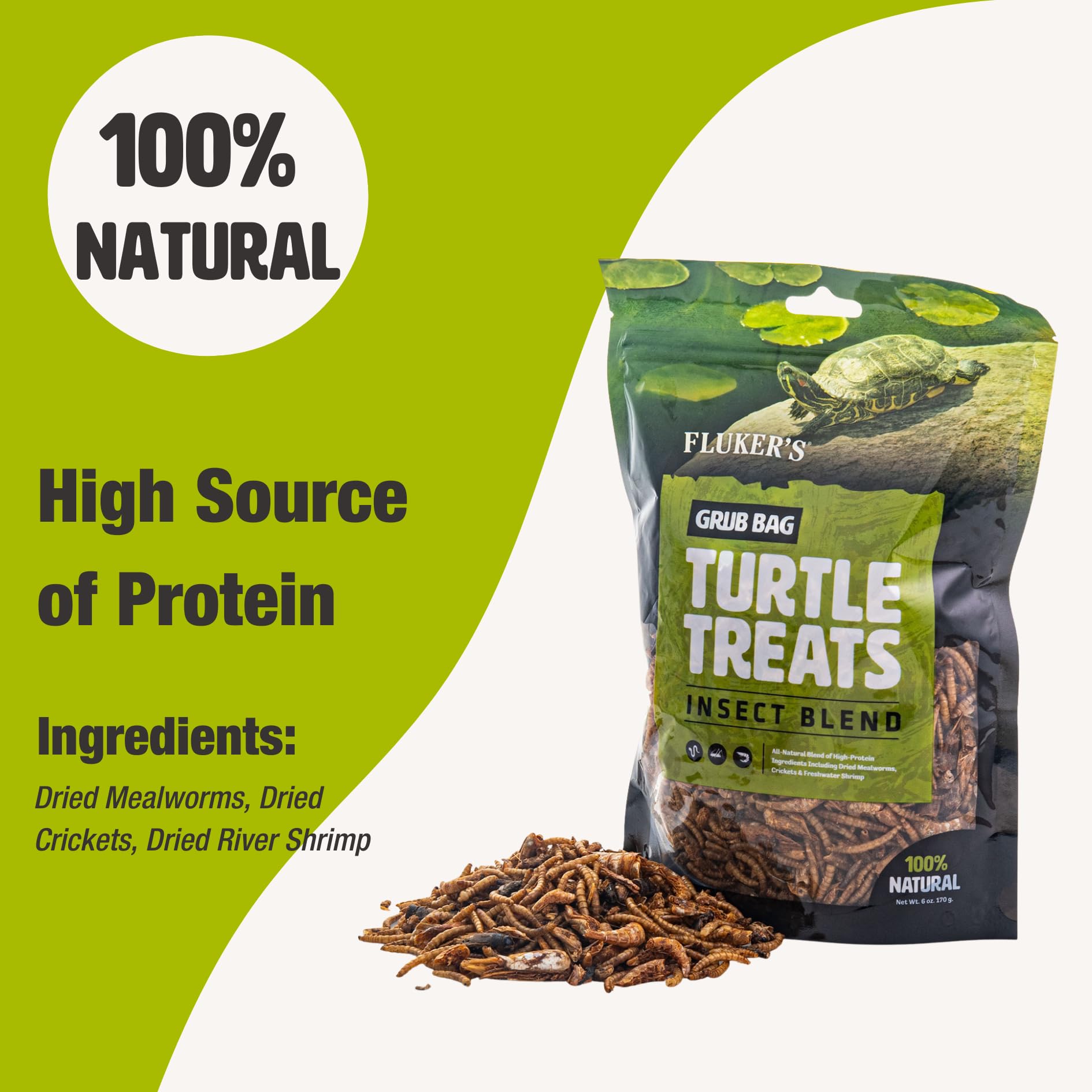 Blend of dried mealworms, river shrimp and Crickets. All-natural high protein treat. Natural Prey For most aquatic turtles. Convenient feeding with resalable pouch.
