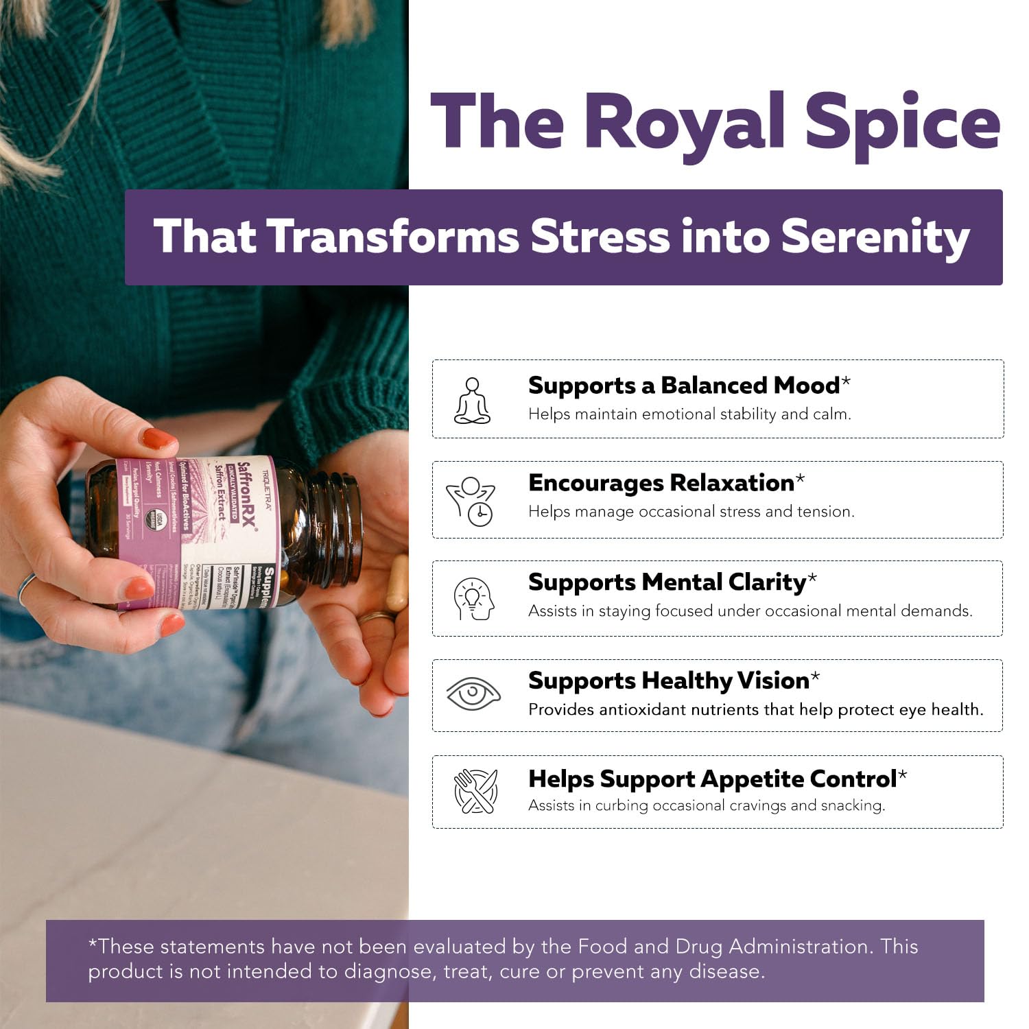 MOOD, MIND & APPETITE SUPPORT: Experience the natural path to calm, clarity, and balanced appetite with our saffron pills. SaffronRX helps support a balanced mood, promotes a calm state during daily stress, enhances mental clarity, and assists in supporting healthy appetite control*