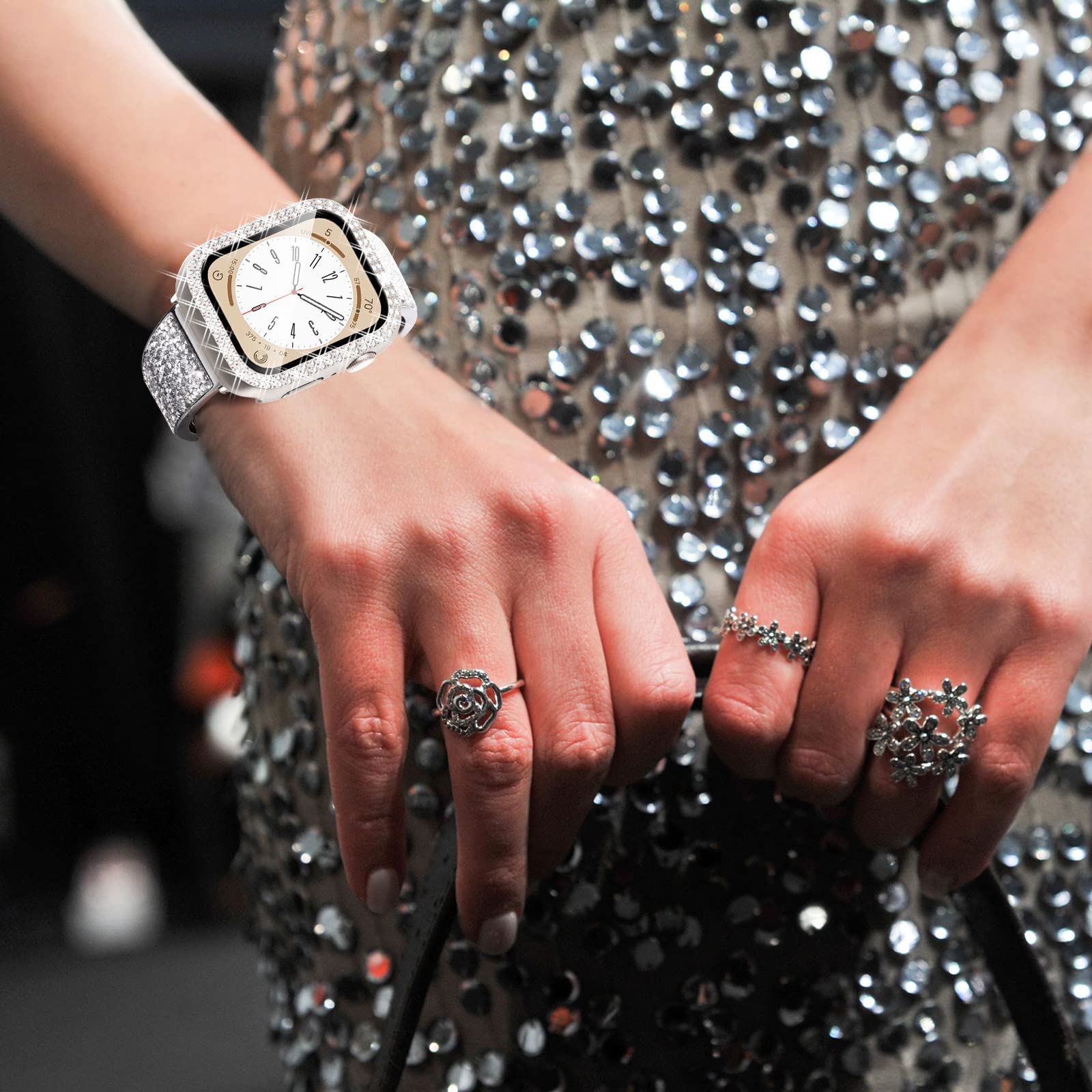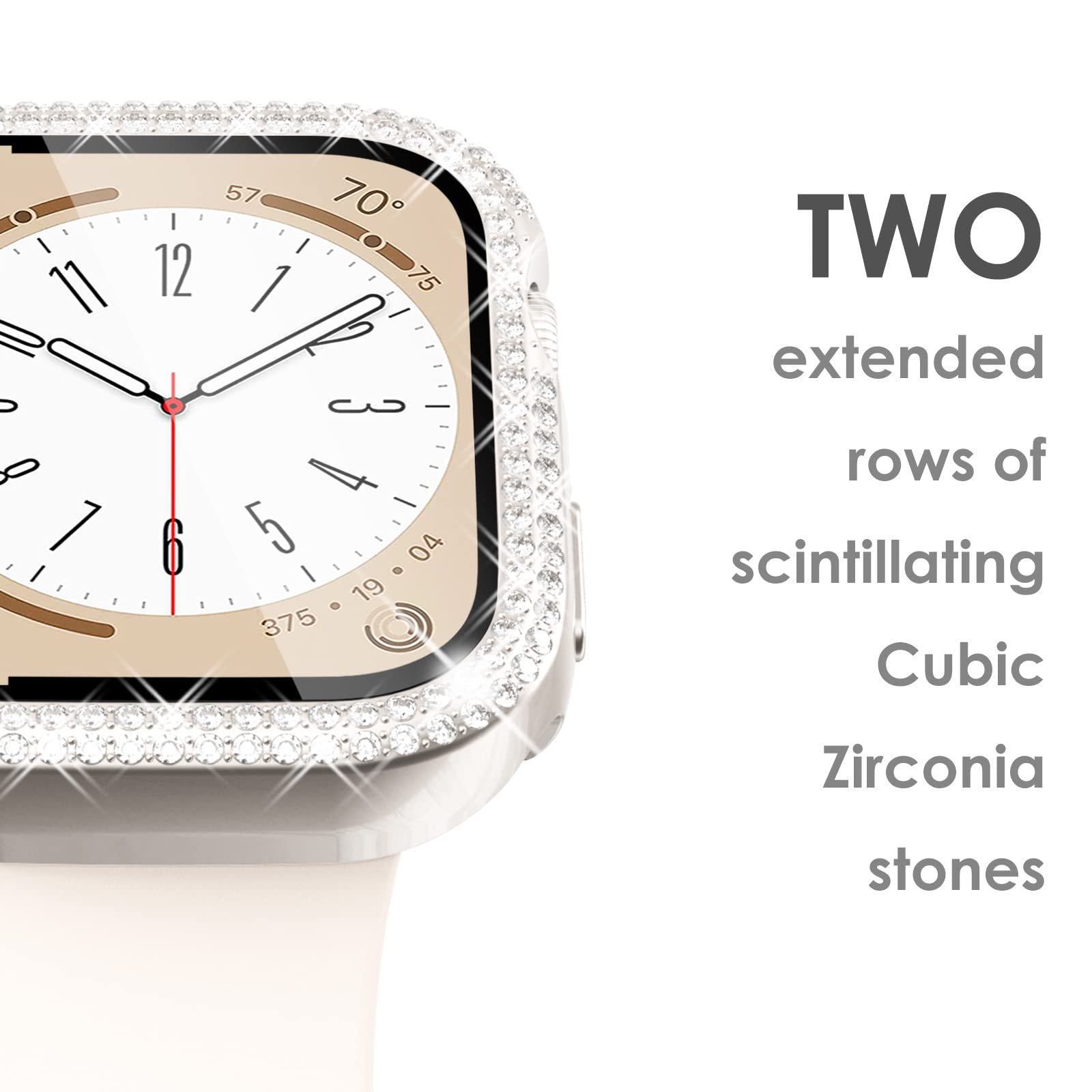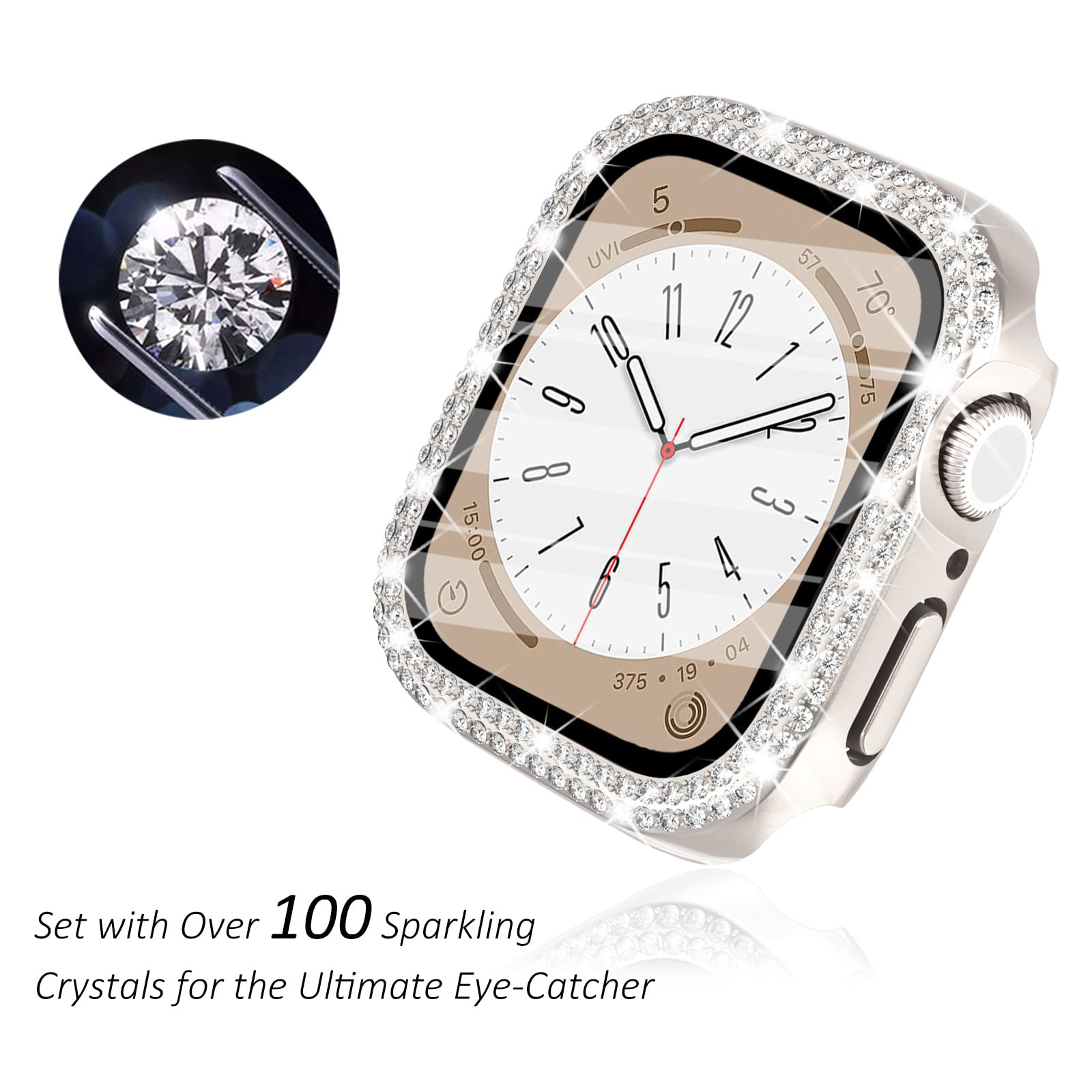 Approximately 300 crystals- Apple Watch Jewelry case featuring a quadruple scintillating cubic zirconia stone, perfect for upgrading a casual outfit or complementing a luxurious evening look.