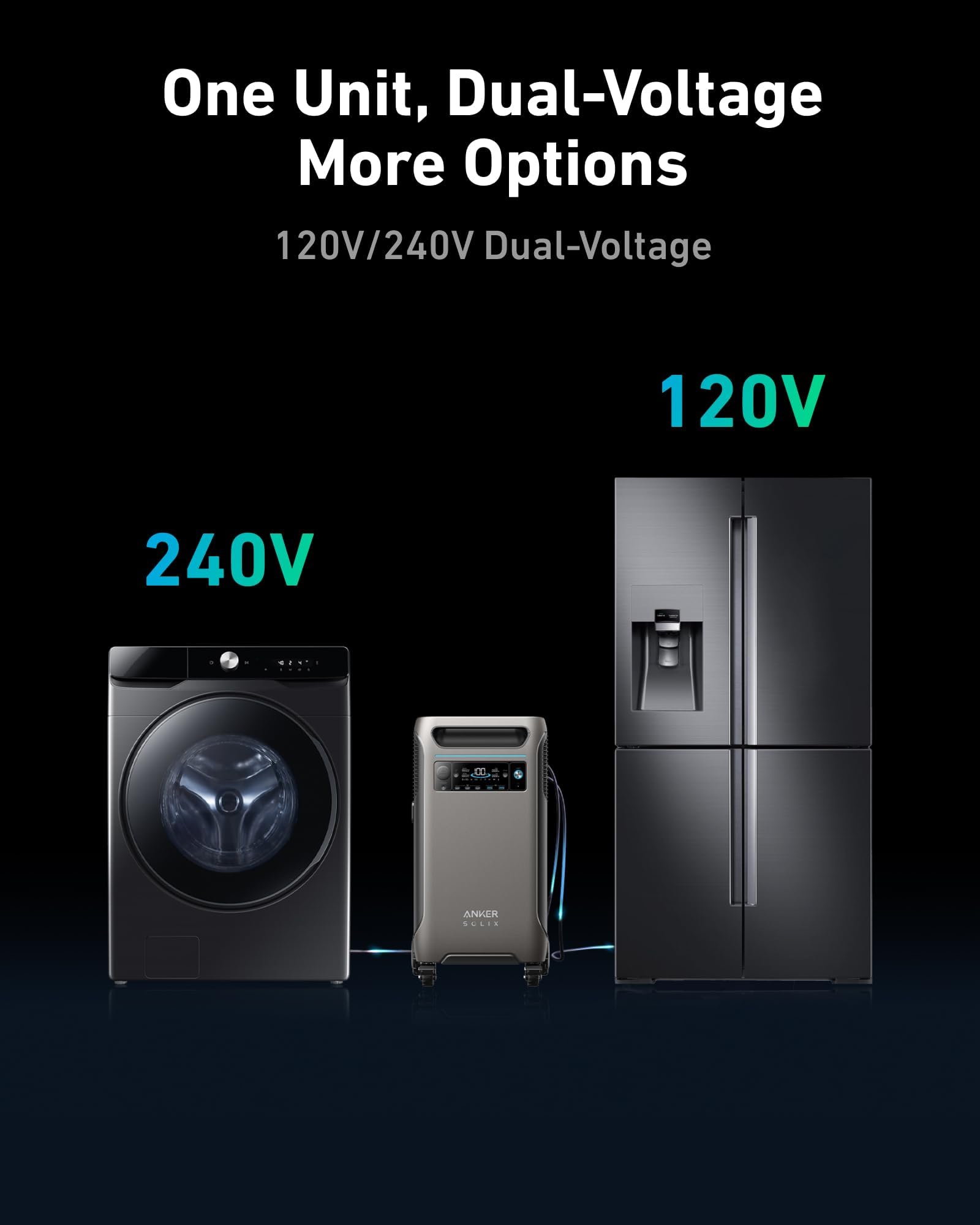 Dual-Voltage for Any Appliance: No more limitations when powering your dryer. With 120/240V and 6,000W AC output, run everything in your home. Add another F3800 for 12,000W max AC output.