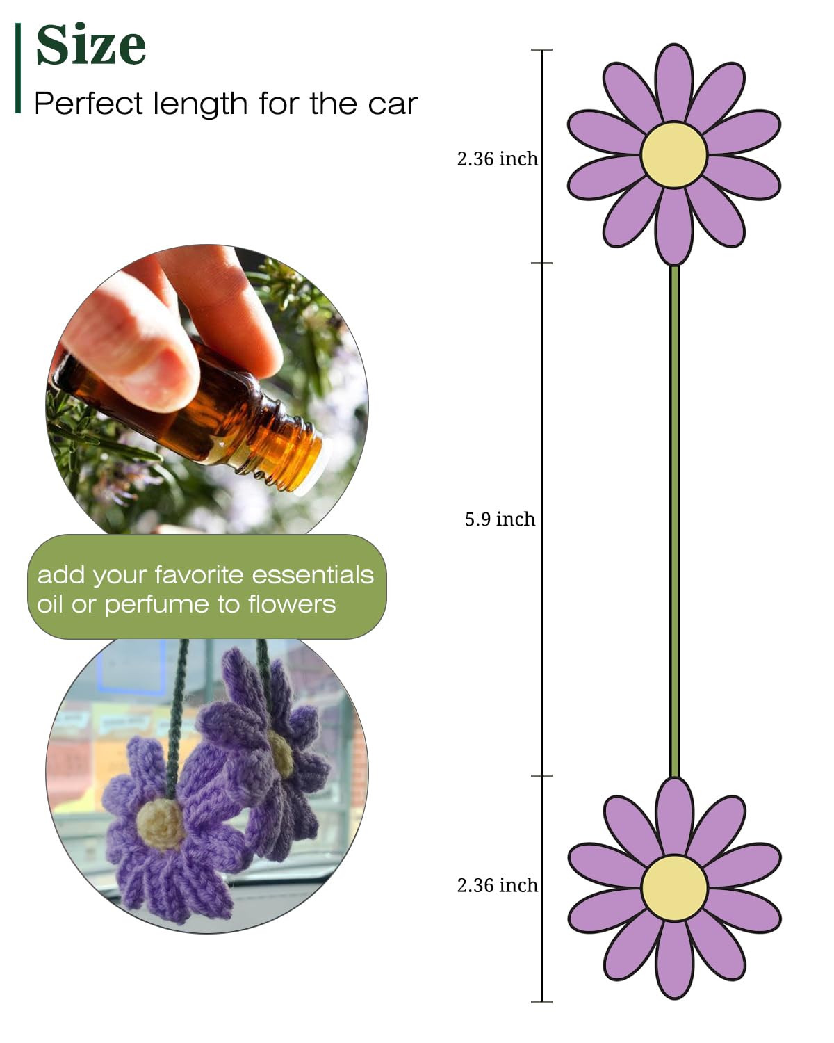【Perfect Length for Car】This crochet hanging daisy is approx 16.5” in length & would make the perfect decor for your car rear view mirror (check your state’s policies on ornaments hanging from the rear view mirror).