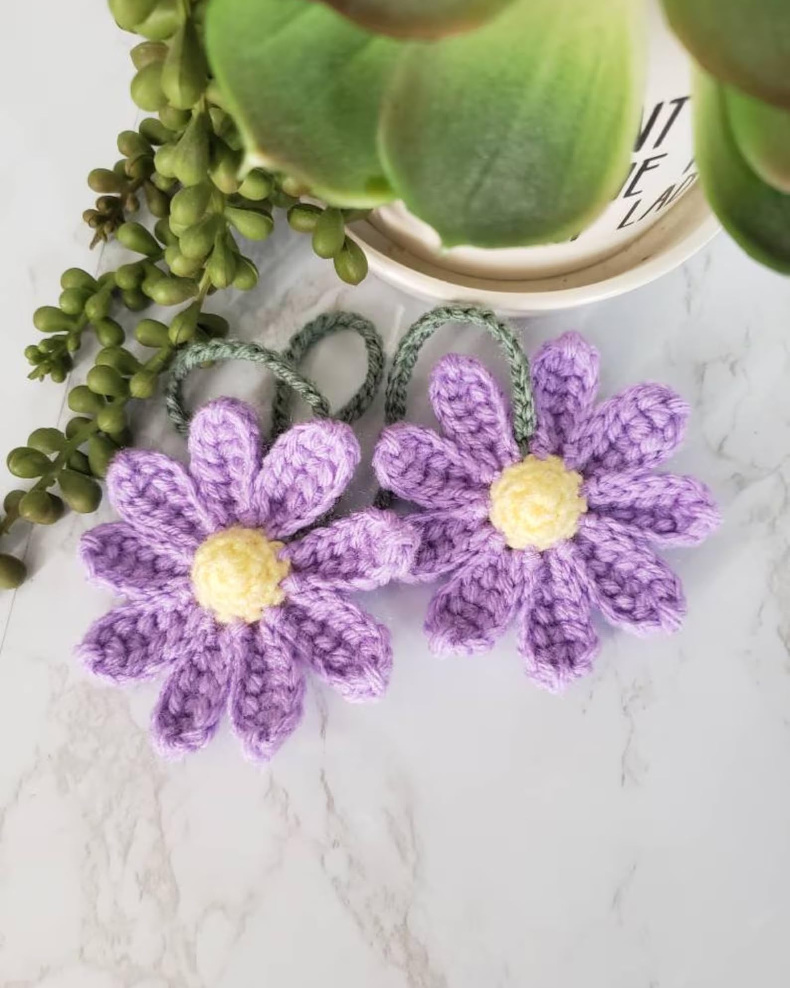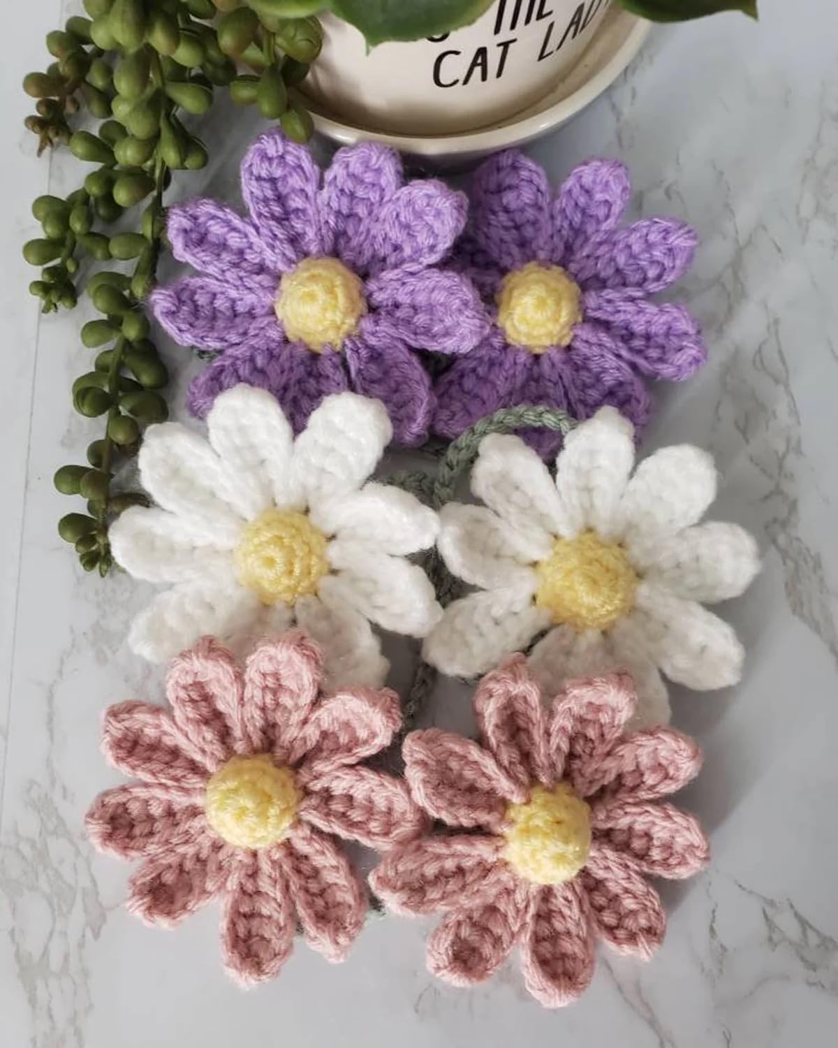 【Material】The cute daisy flowers are made from cotton yarn(plastic-free),which is soft and eco-friendly.Every one of our products are crafted by hand in our home office, with the utmost care and attention. The craftsmanship is perfect down to every stitch,we're proud to offer great quality,with that said keep in mind that no two items will be the same.