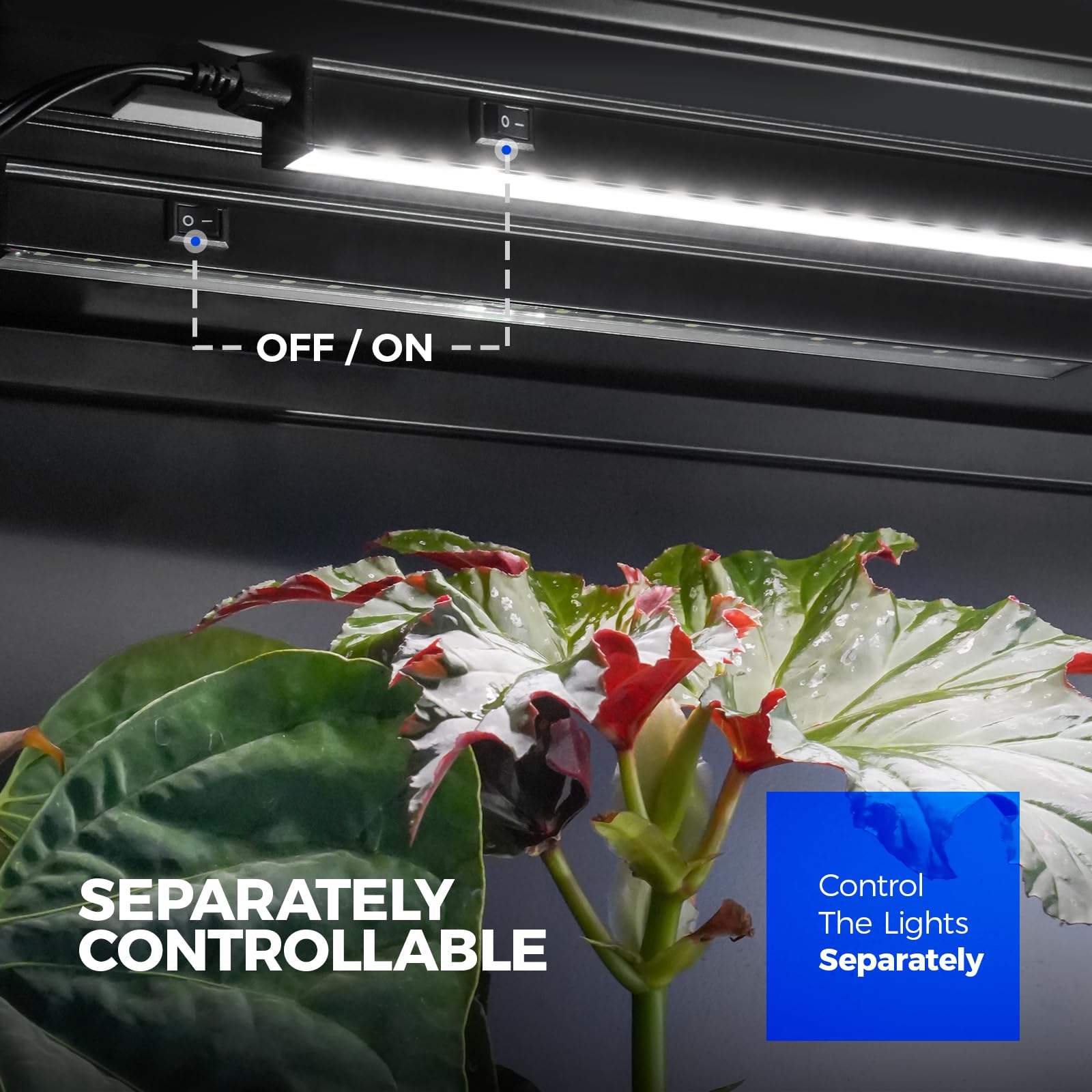 Separately Controllable: Each T5 full spectrum led grow light has an on/off switch on the surface of the housing, enabling control of the lights separately or together according to the PPFD that plants need, catering to personalized needs