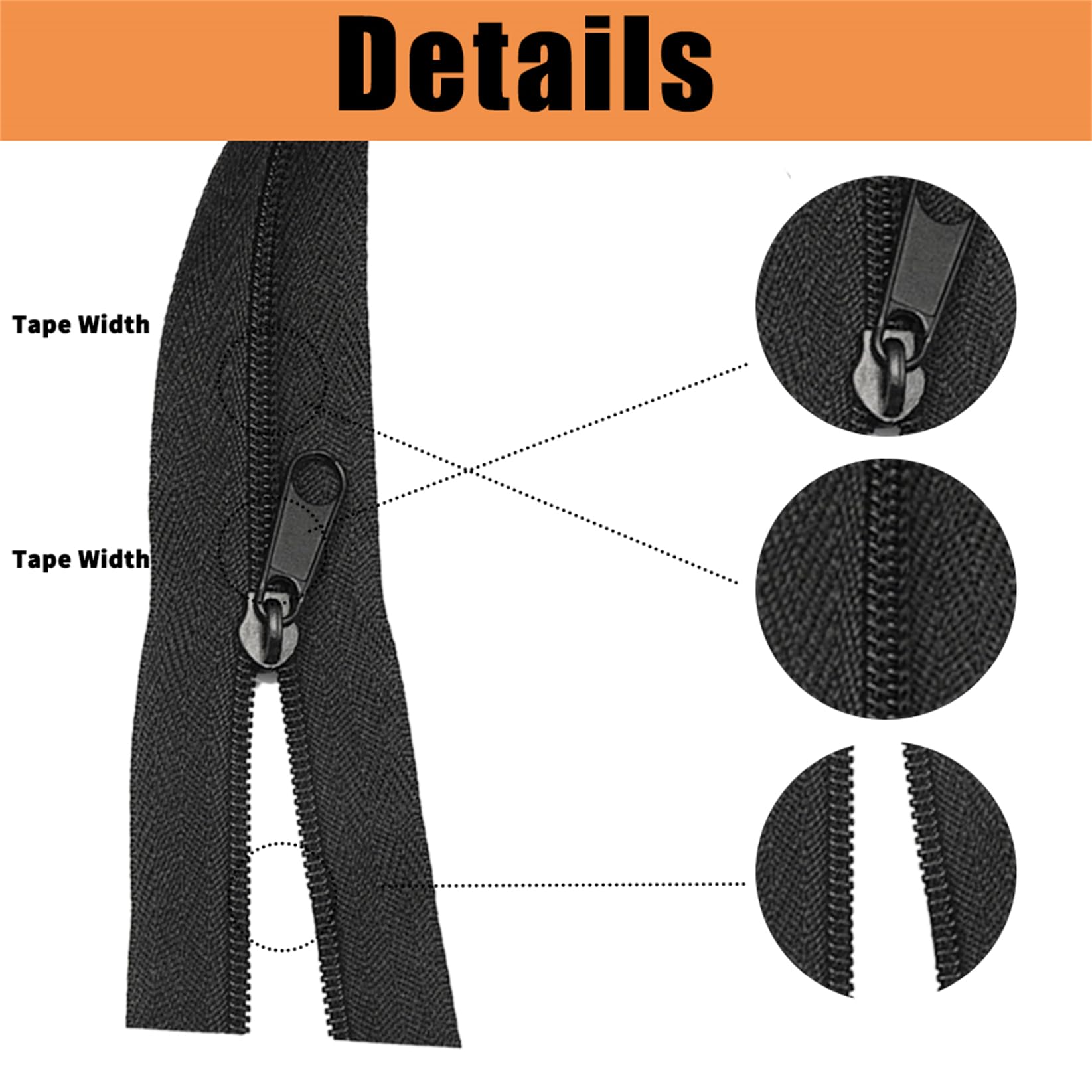 【High-Quality】10 Yards Continuous Zippers are made of nylon that are very strong and sturdy to use. Width for Zipper tape is about 1.57 inches , and zipper teeth wide is 0.39 inches.