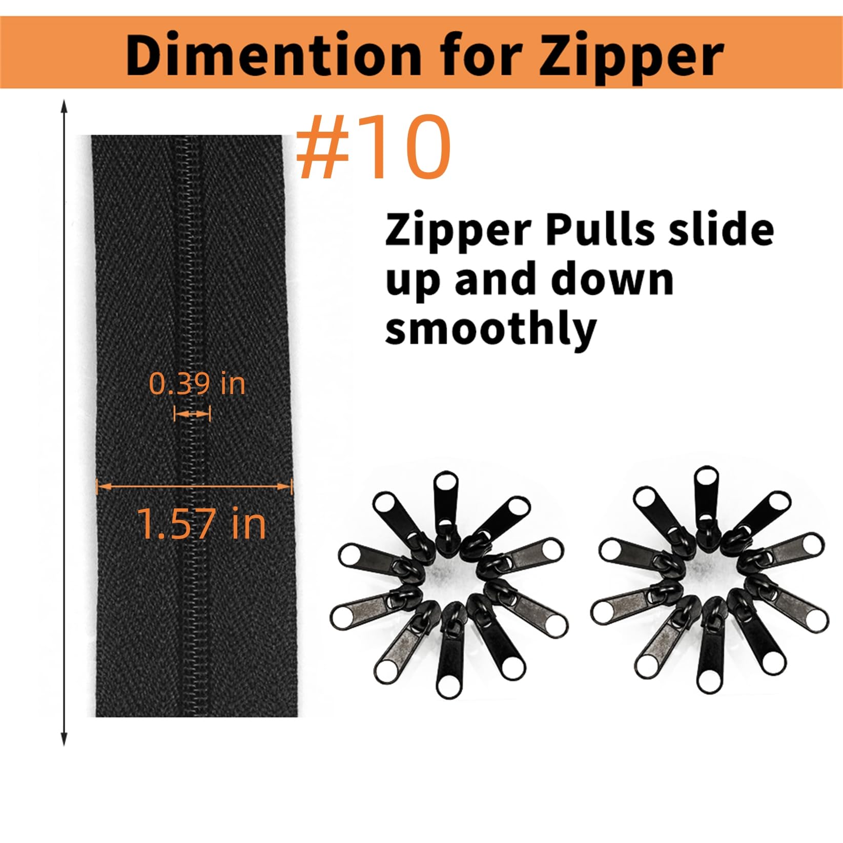 【Comes with Zipper Pulls】Besides of 10 Yards zippers, there are 20PCS matched Zipper Sliders inside, durable and lightweight, which makes the zipper slide up and down very smoothly.