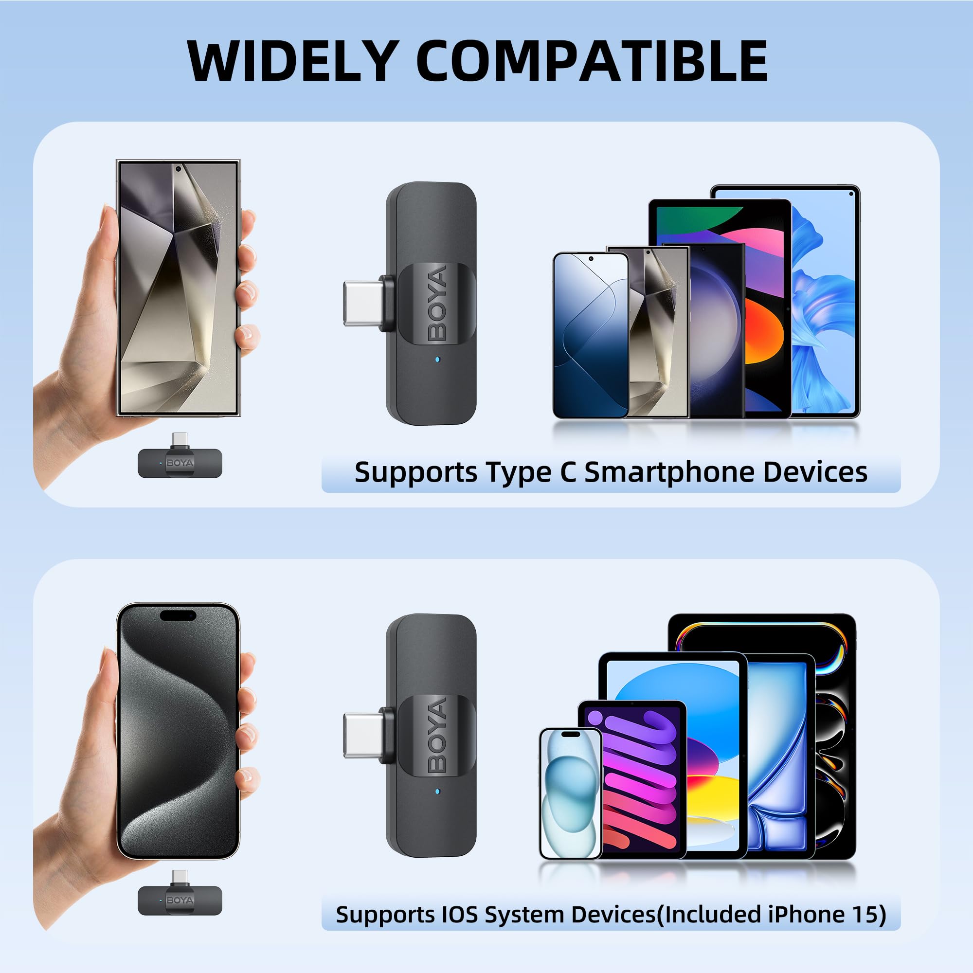 Lightning Receiver NOT for iPhone 15/16:BOYA BY-V4D Receiver with MFi Certified Lightning is only compatible with iPhone 12/13/14 or previous series and also compatible with iPad with Lightning interface. If there is a Type-C interface in your device, please refer to BOYA BY-V4U with Type-C RX