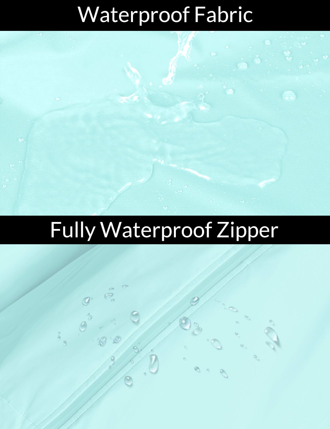 100% Waterproof: Water-repellent fully seam-sealed rain jackets can work under over 5000mm pressure head, while also being windbreaker. (Breathability Rating: 3000g/m2/24hr)