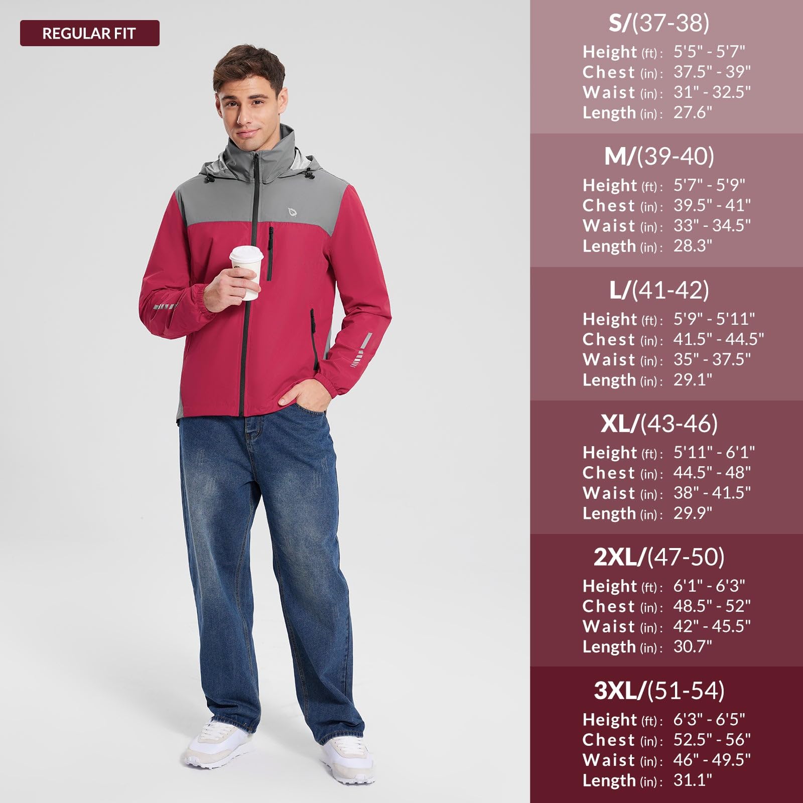 Multi Pockets & Packable: Mens jacket comes with 1 zippered chest pocket, 2 secure-zip hand pockets and 1 zippered back pocket can are more convenient to secure your items. It can be packed into its own back pocket - stowing away for hiking, bike touring, or any travel.