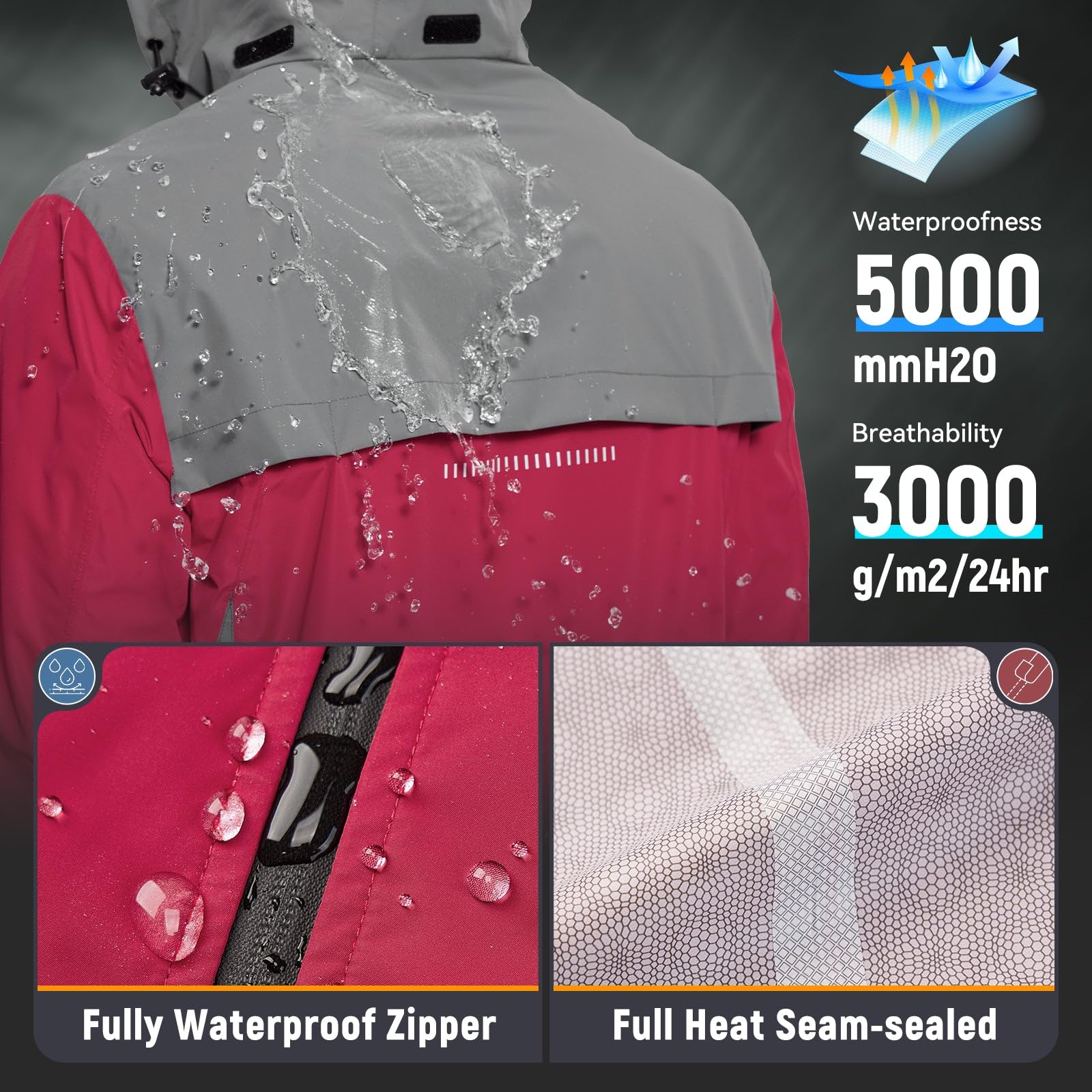 Waterproof & Breathable: The men's rain jacket interior is laminated TPU membrane with 5000mm waterproofing and 3000g/m2/24hr breathability, durable enough to withstand anything. Keep you all-day dry in overcast and rainy weather. Ventilation system in the back enhanced breathability.