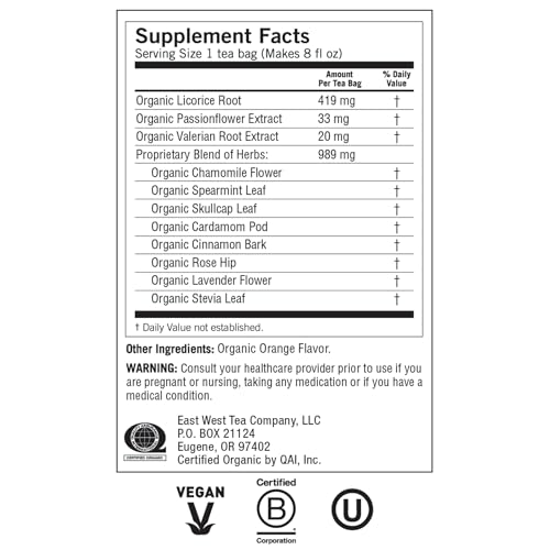 CONTENTS: Caffeine-free, Vegan, Kosher, Gluten-free, No Artificial Flavors or Sweeteners, and individually packaged in compostable tea bags.