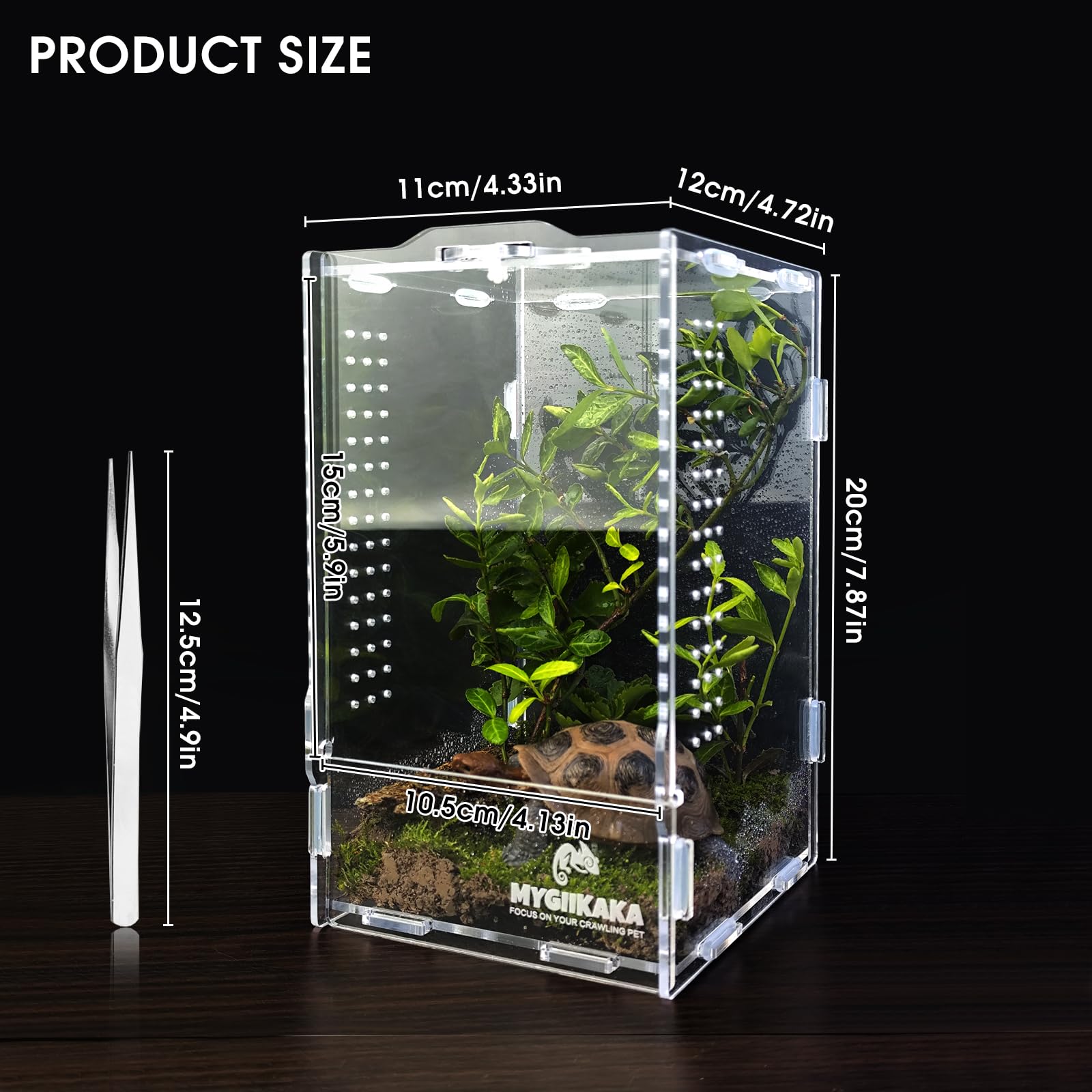 【Acrylic Reptile Terrarium】Our small reptile cage measures 7.87" x 4.72" x 4.33", perfect size for kinds of baby reptiles or other small animals, providing sufficient room for reptiles pets to move around.