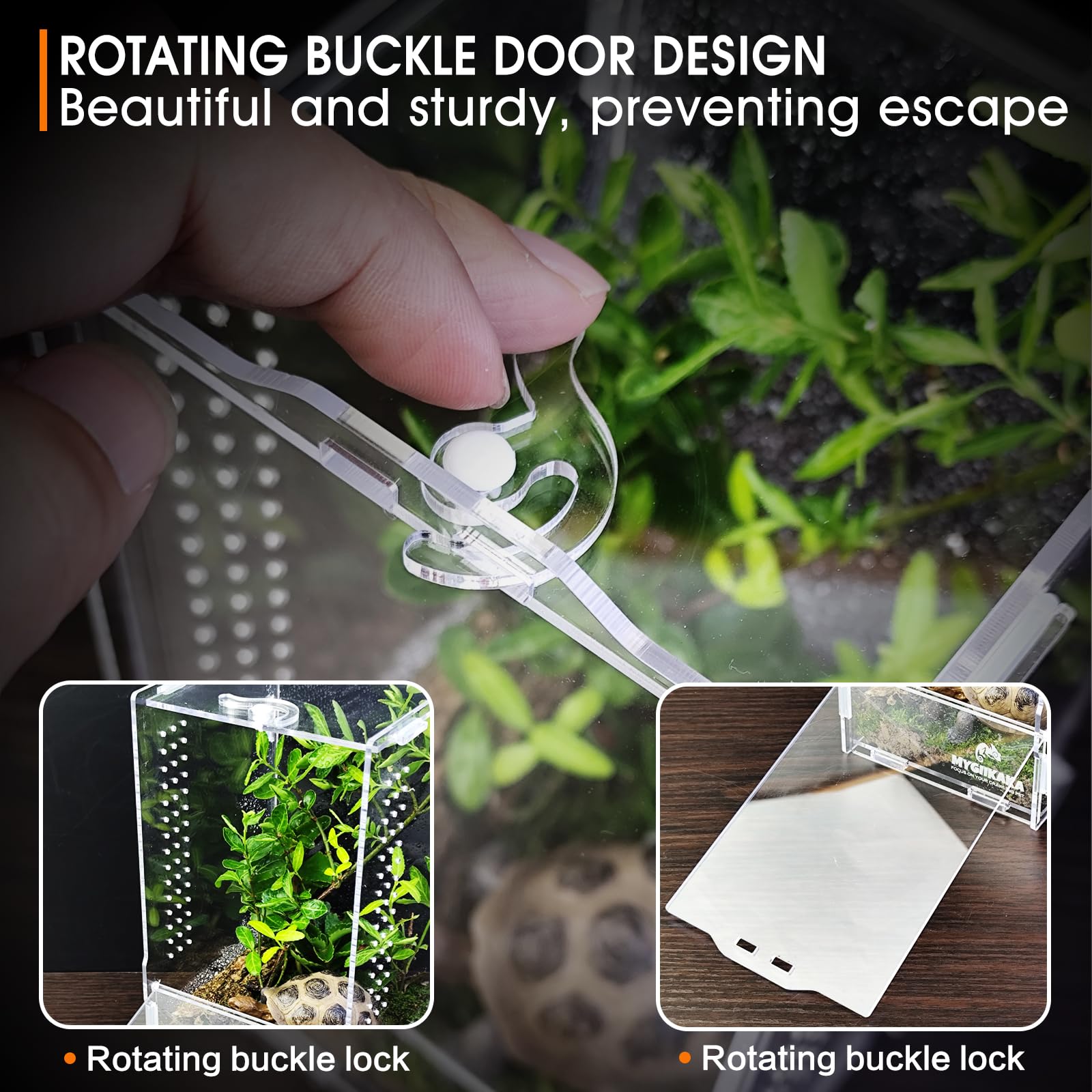 【Perfect Design】This reptile breeding box tarantula enclosure is designed with ventilation holes on the two sides, providing the reptiles with fresh air. And the locking handle keeps your pet safe.