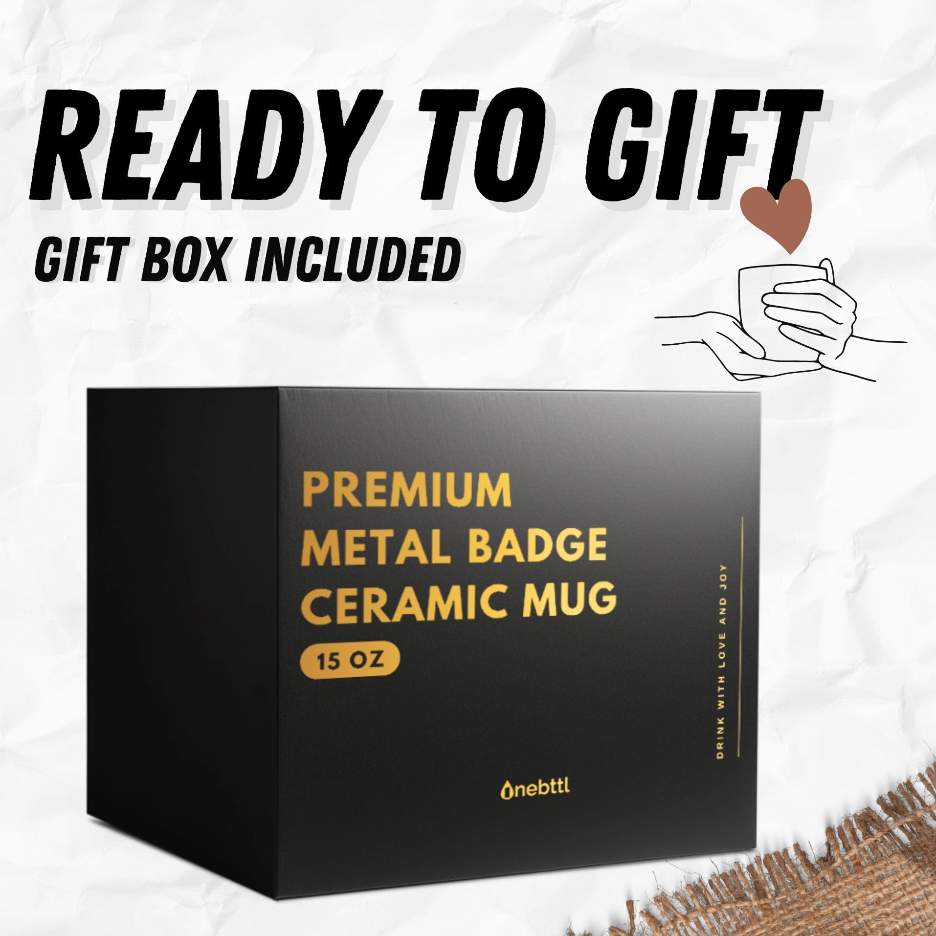 Classic and timeless: With its classic black color and luxurious golden badge, this mug features a unique design that sets it apart from ordinary ceramic mugs and is always in fashion.