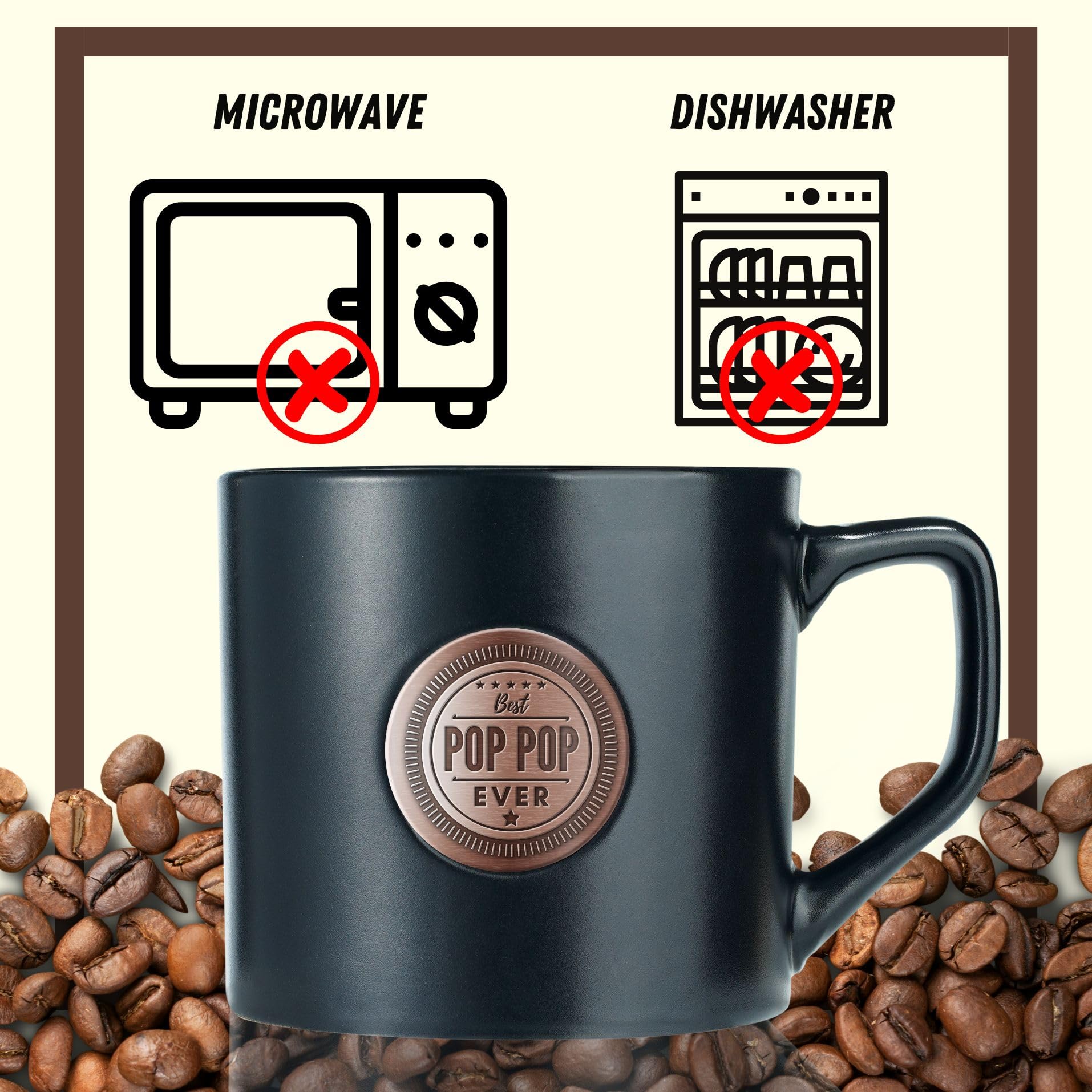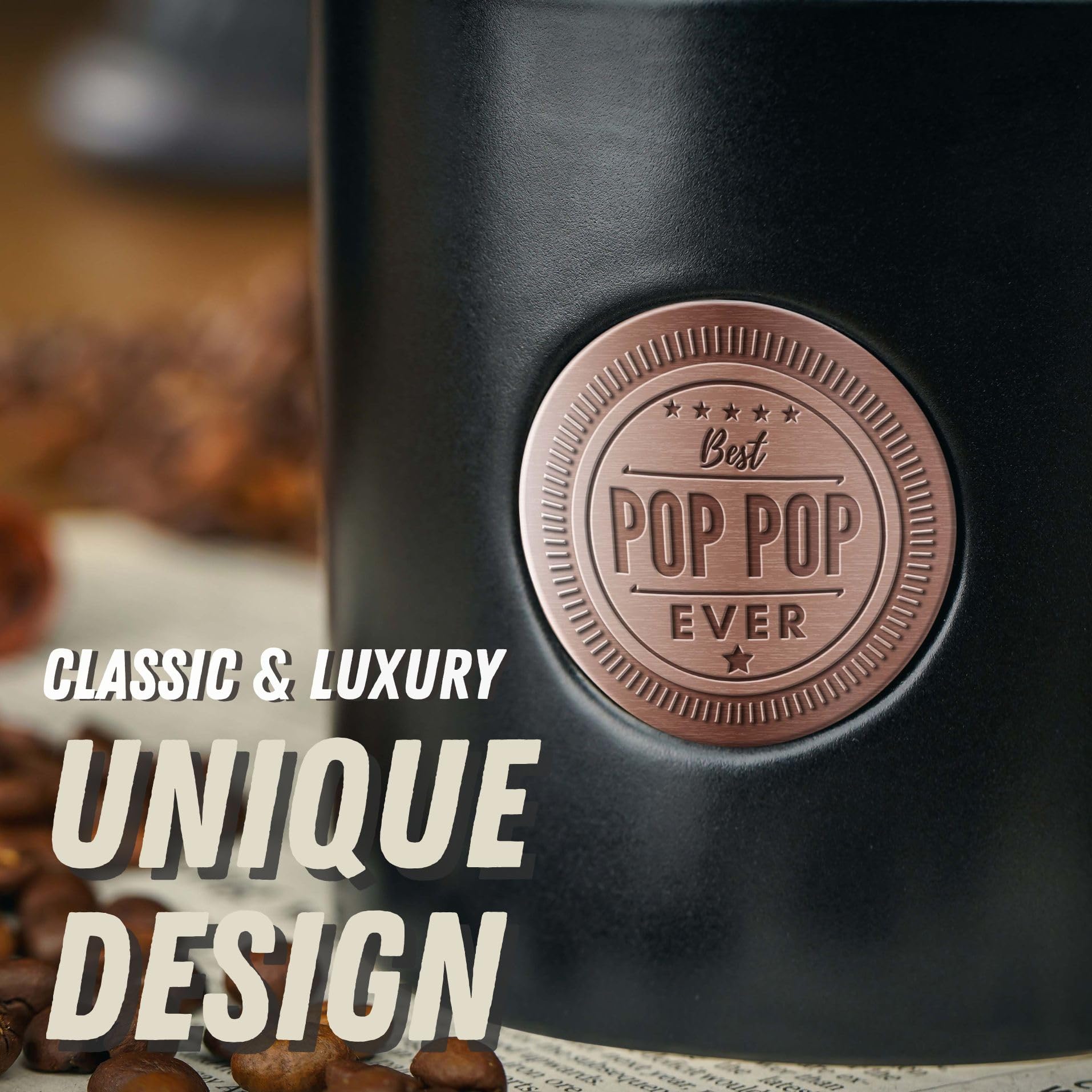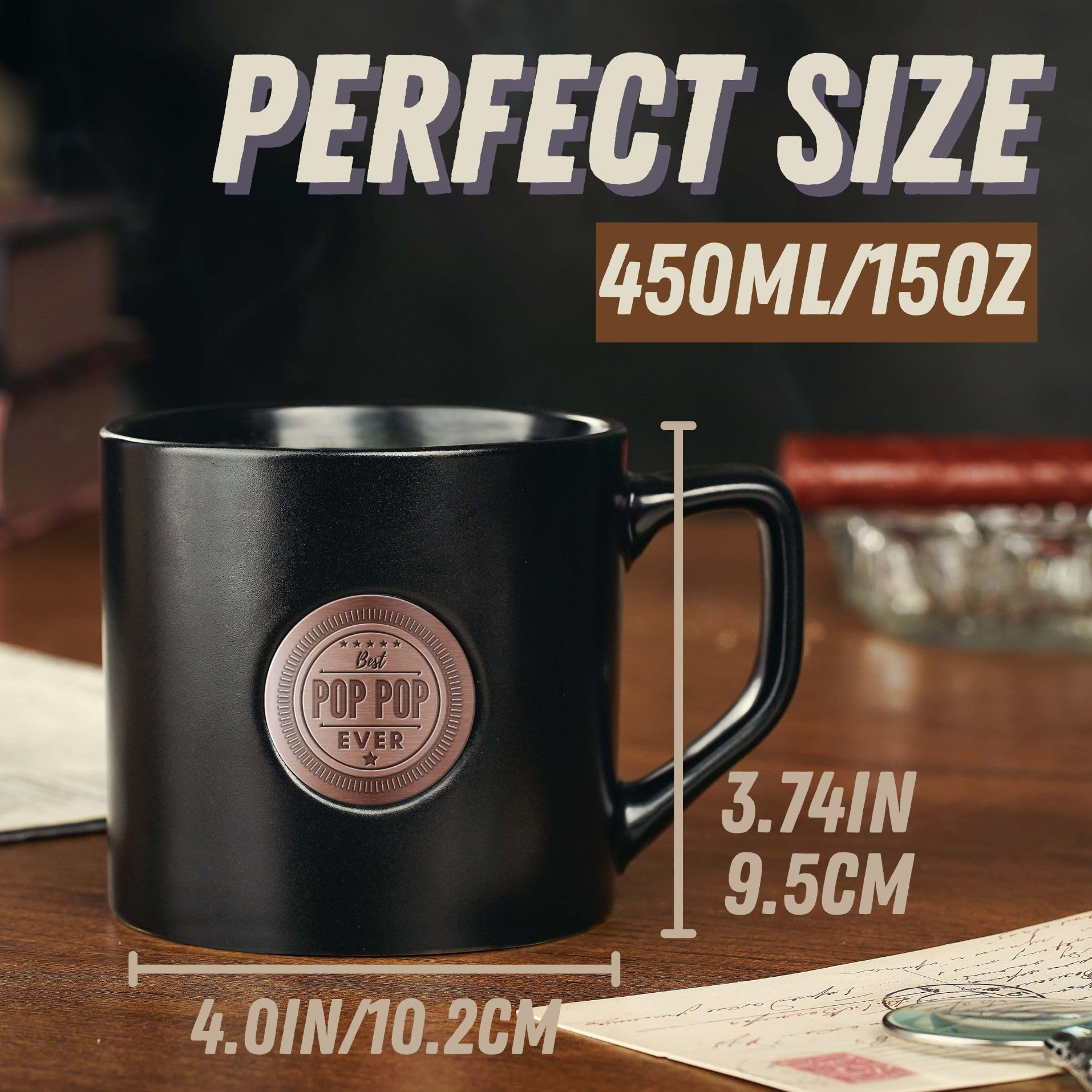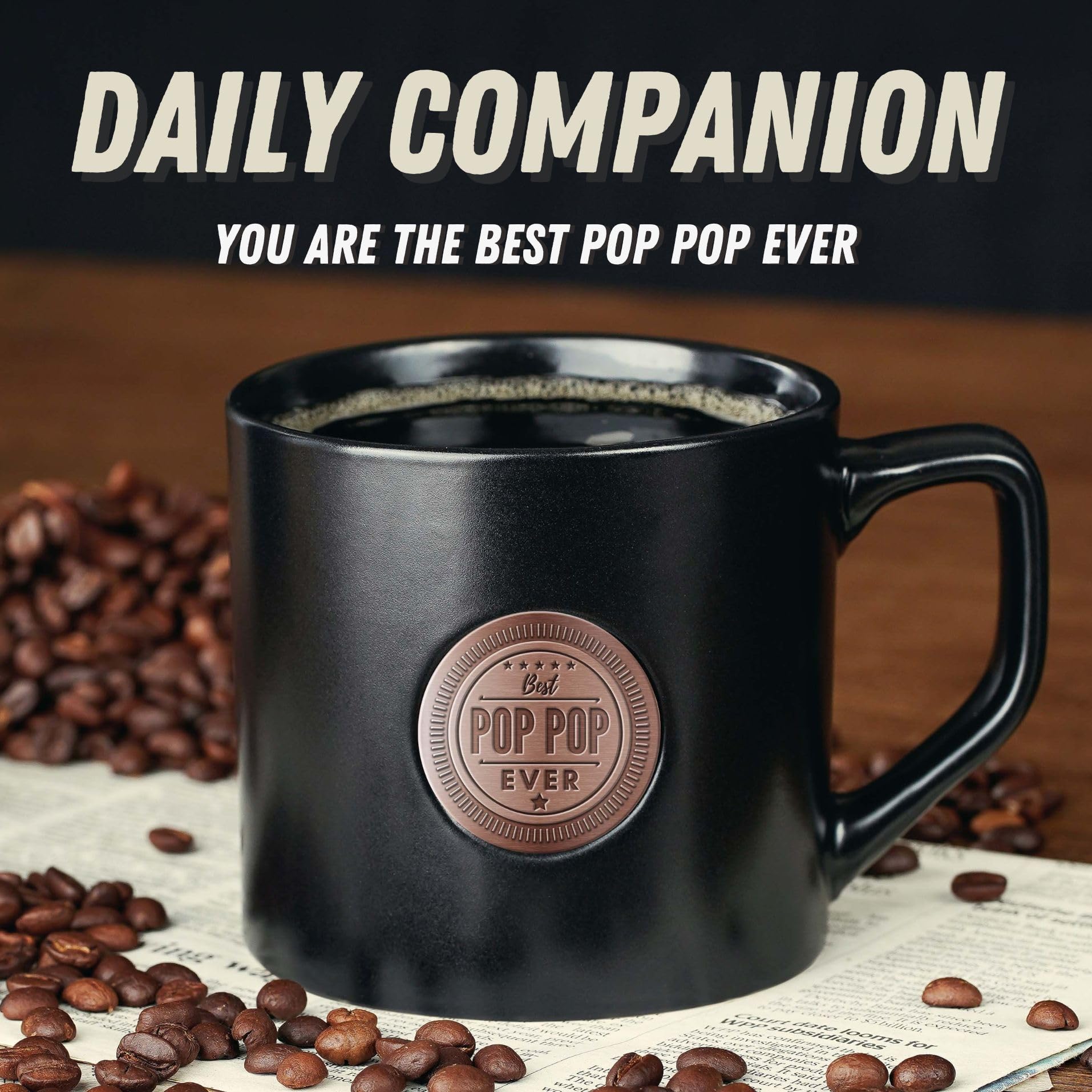 Onebttl Father's Day POP POP Gifts, Grandfather Coffee Mug with Golden Badge from Granddaughter and Grandson, 15oz/450ml Ceramic Mug for Christmas, Birthday - Best Pop pop Ever