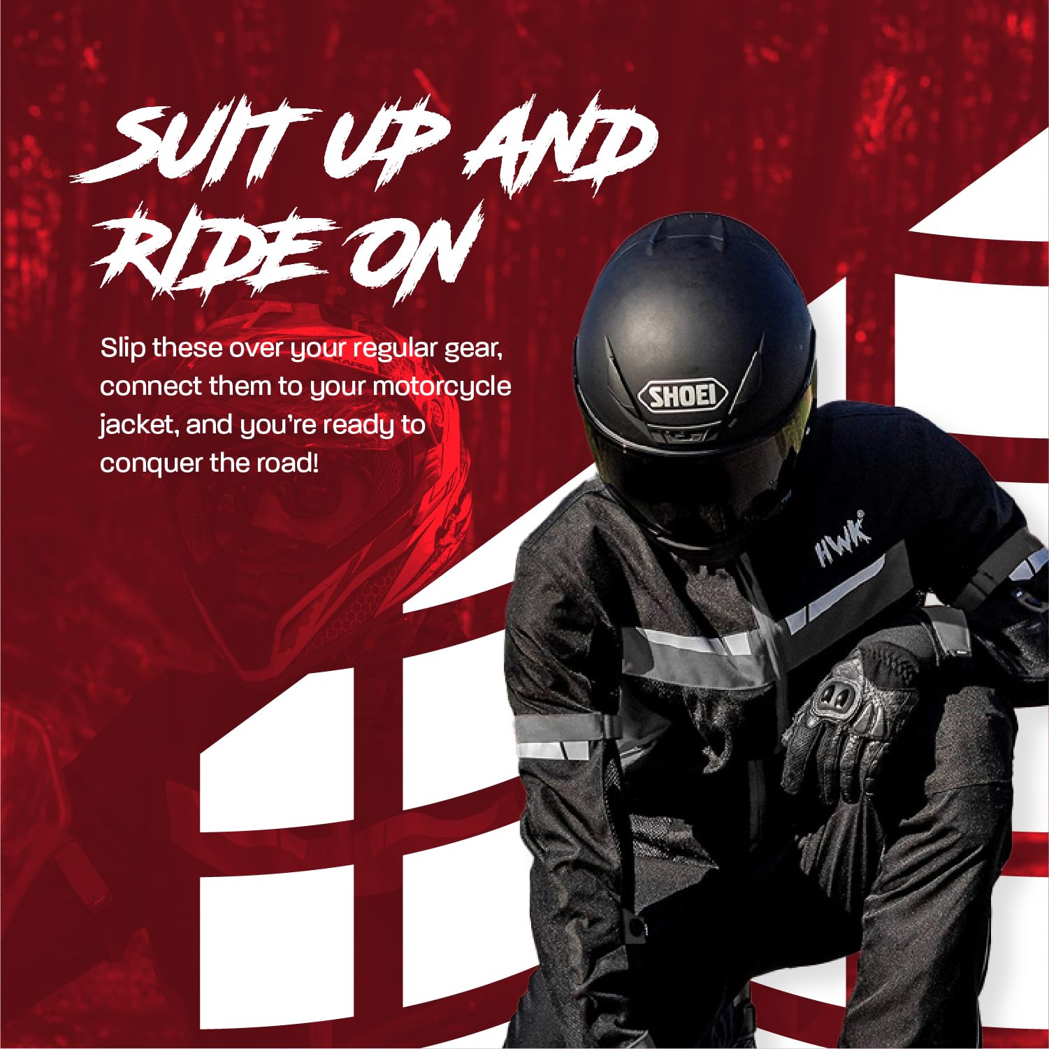 Connect Securely. A waist connection zipper allows riders to secure their Hawk motorcycle jacket, stopping it from sliding up during rides. Ankle zips let them wear their pants over motorcycle boots