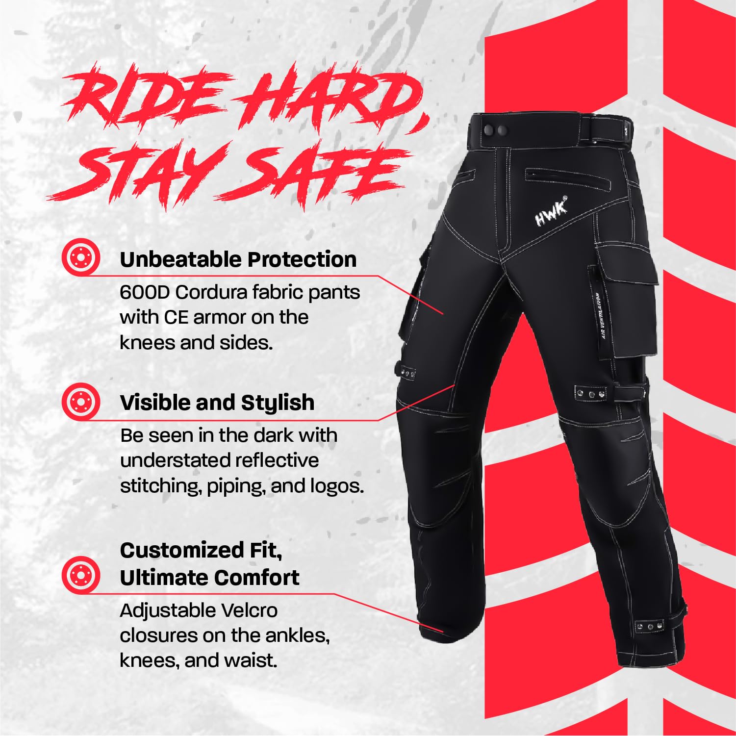 600D CORDURA TEXTILE: Extremely optimal motorcycle riding pants with a LIFETIME WARRANTY! These ALL-PURPOSE daily-use HWK pants can also be used as tactical pants, work pants and cargo pants for men that will serve you for a lifetime, if anything goes wrong just message us for a replacement