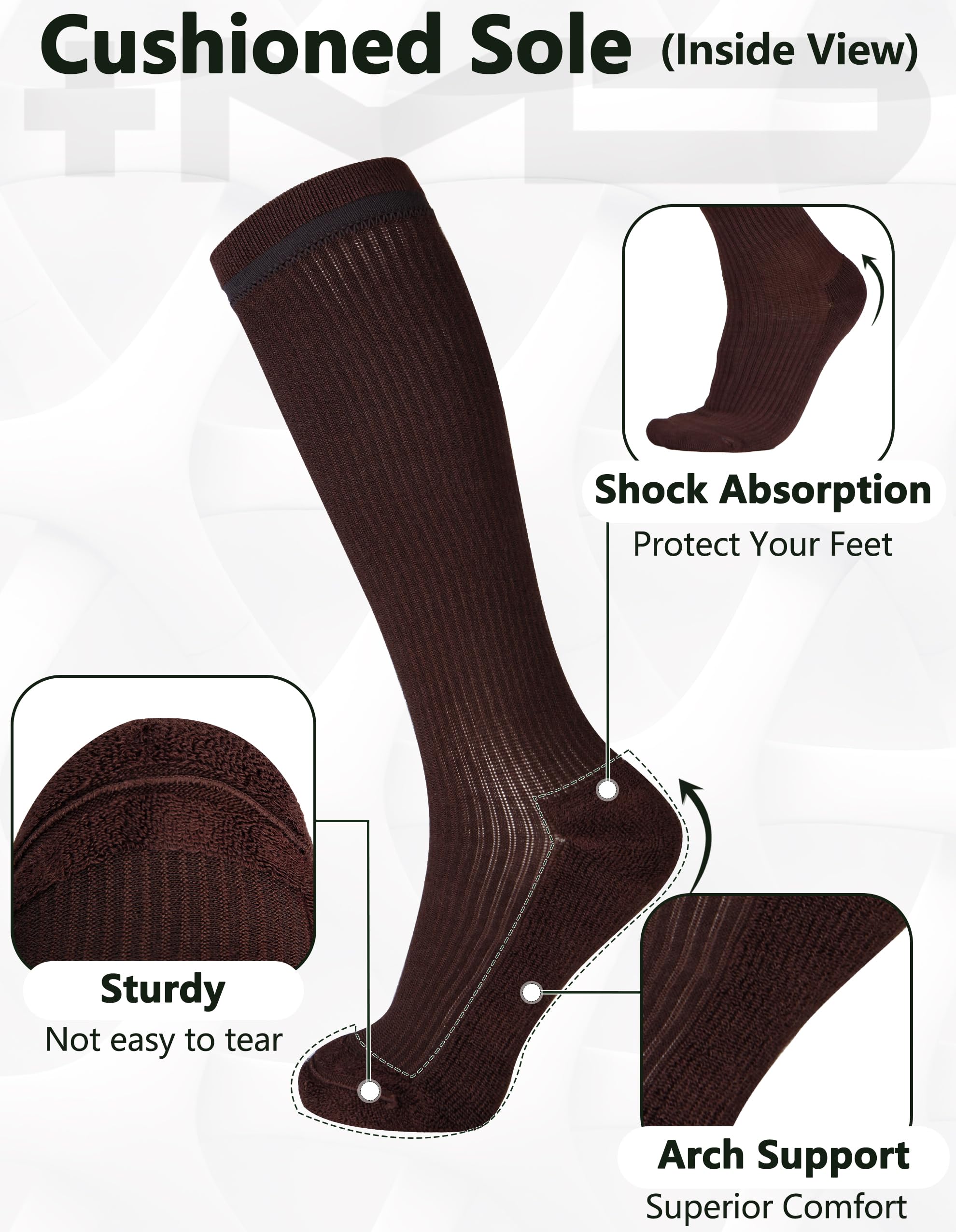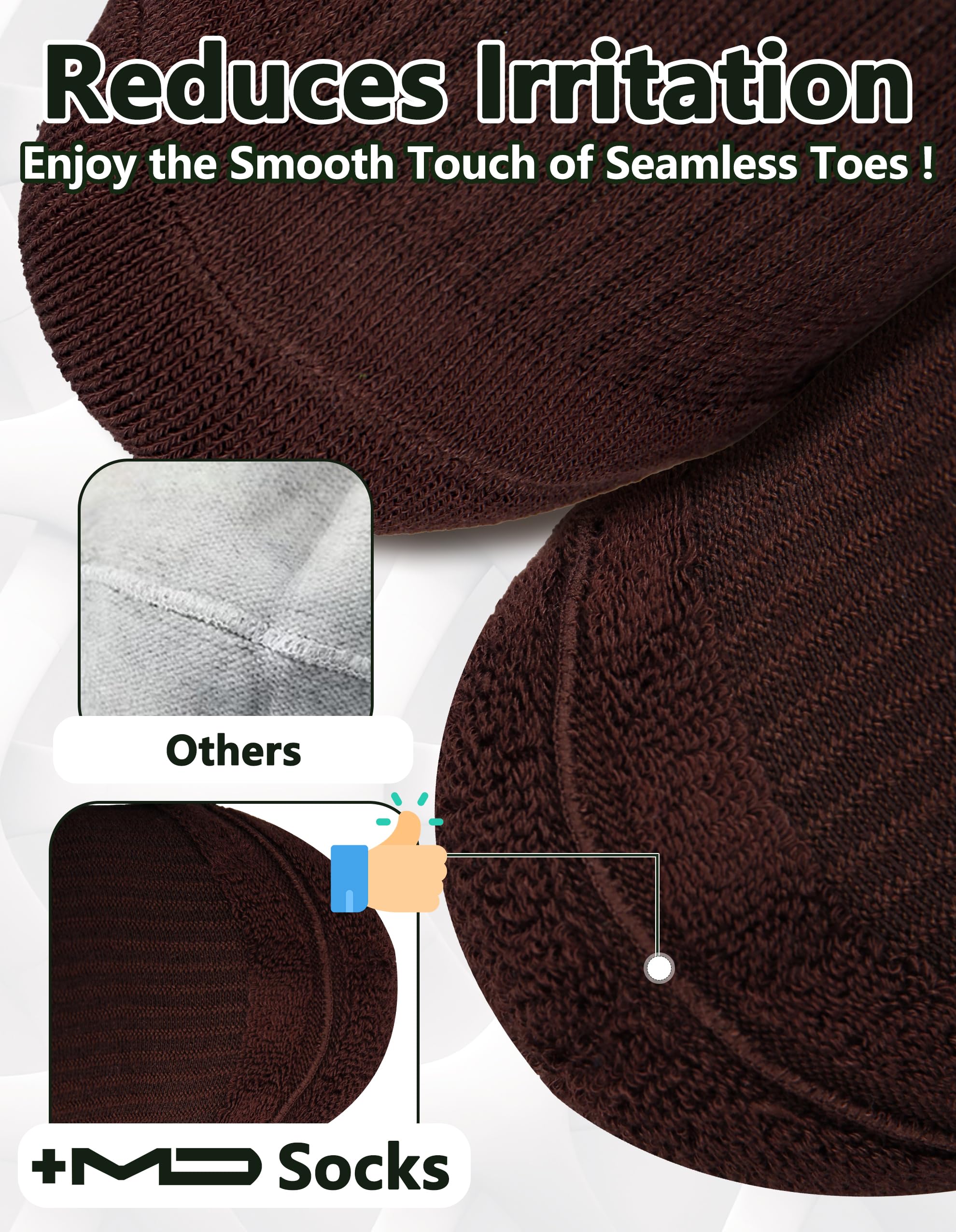 4. Cushioned Sole for All-Day Comfort: Equipped with a soft, thickened cushioned sole, +MD compression socks provide enhanced comfort and support. The shock-absorbent, breathable and durable construction keeps feet cozy and dry through daily wear and various activities.