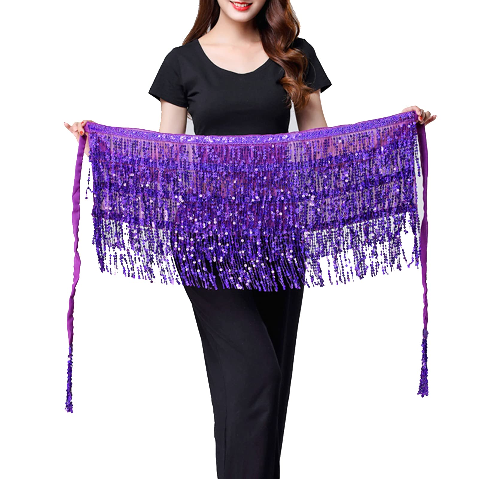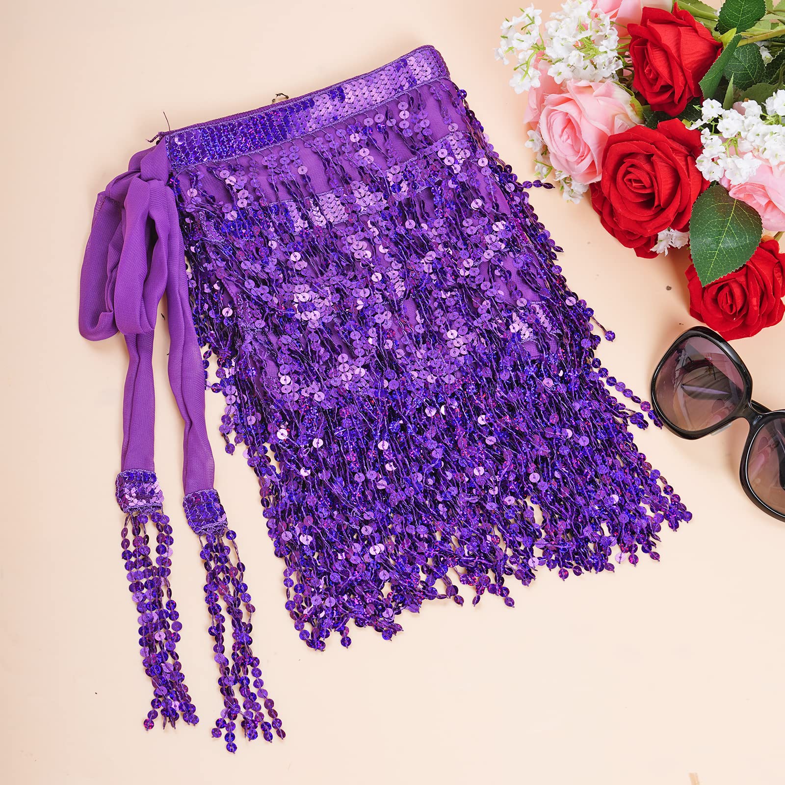 Exquisite Design: This fringe hip scarf has various strands of sequins, reflect any light that shines on its surface, unique and gorgeous, make you be the center of the crowd