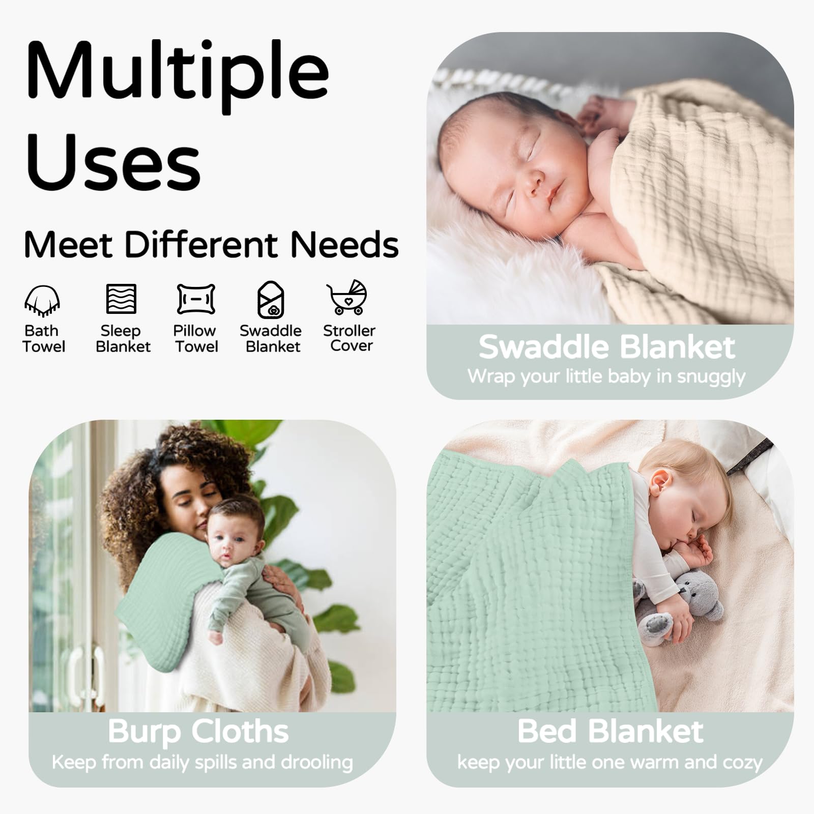 [Soft and Absorbent] - 100% high quality muslin cotton, the best fabric for babies, makes the baby bath towel super soft than regular cotton towel. It absorbs the water off baby quickly and keeps baby warm after baths.