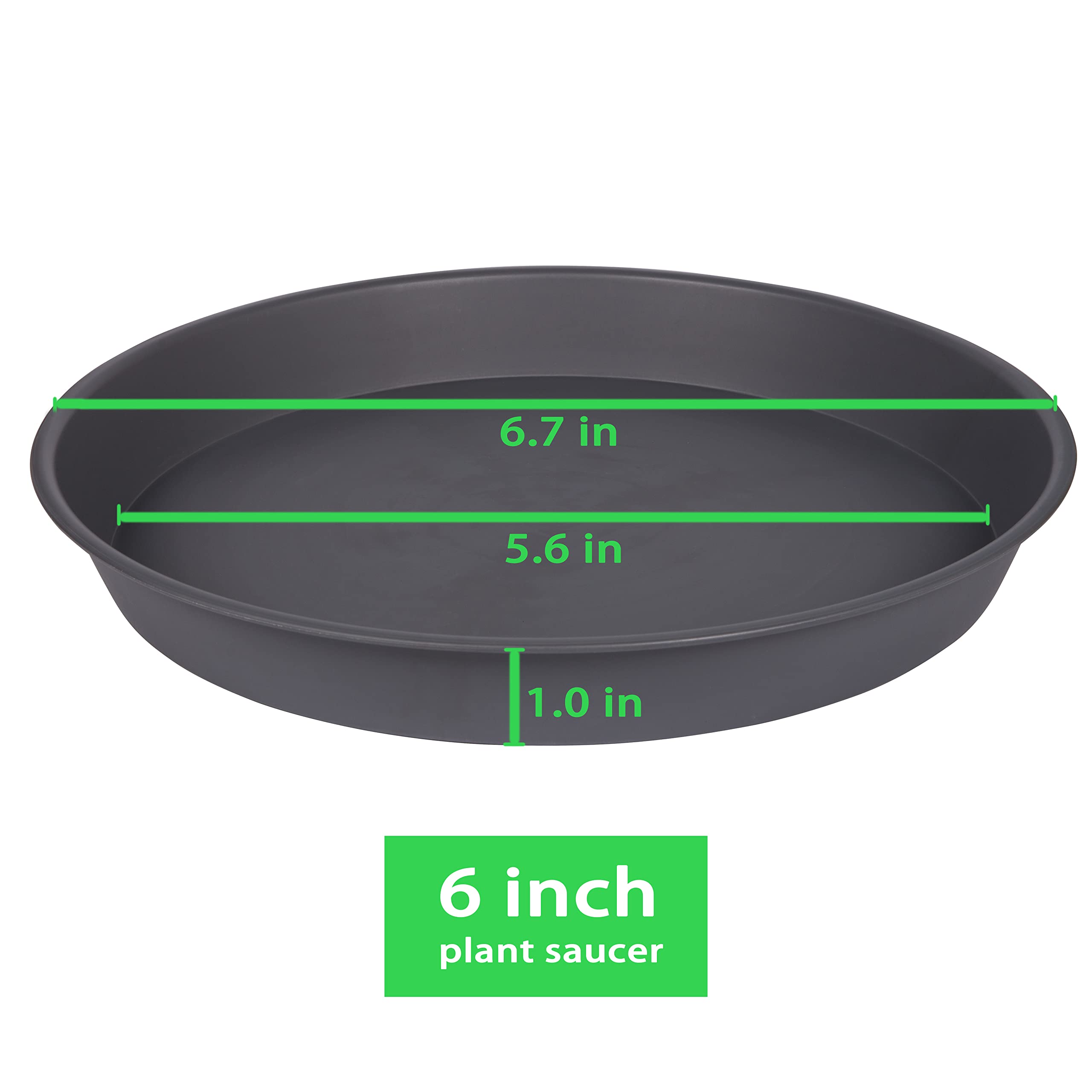 【PlANT SAUCER USE】These 6 inch plant saucers catches water overflow from flower pots and keeps your furniture and stains free. No fear of leakage from flower pots. Dark brown appearance will not affect any color matching with planters.
