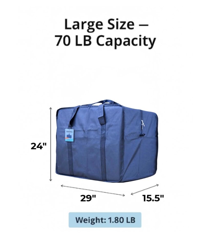 ✔️ Heavy-Duty Construction & Space-Saving Foldability Built for strength and reliability, this duffel bag features reinforced stitching, tear-resistant material, and high-capacity performance, supporting loads of up to 70 lb without losing its shape. Despite its rugged design, it easily folds flat into a compact size when not in use—ideal for tucking into a drawer, car trunk, or carry-on suitcase. Whether you're storing gear between trips or packing light on your outbound journey, this bag gives you maximum space when you need it, and minimal bulk when you don’t.