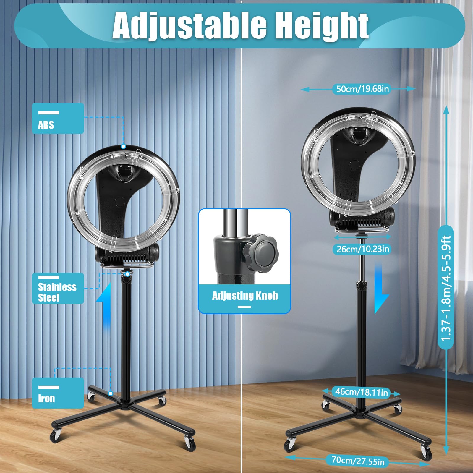 Adjustable height: Height of orbiting hair dryer can be freely adjusted from 55.11 - 70.86 inches and locked with a fixed knob for easy customization