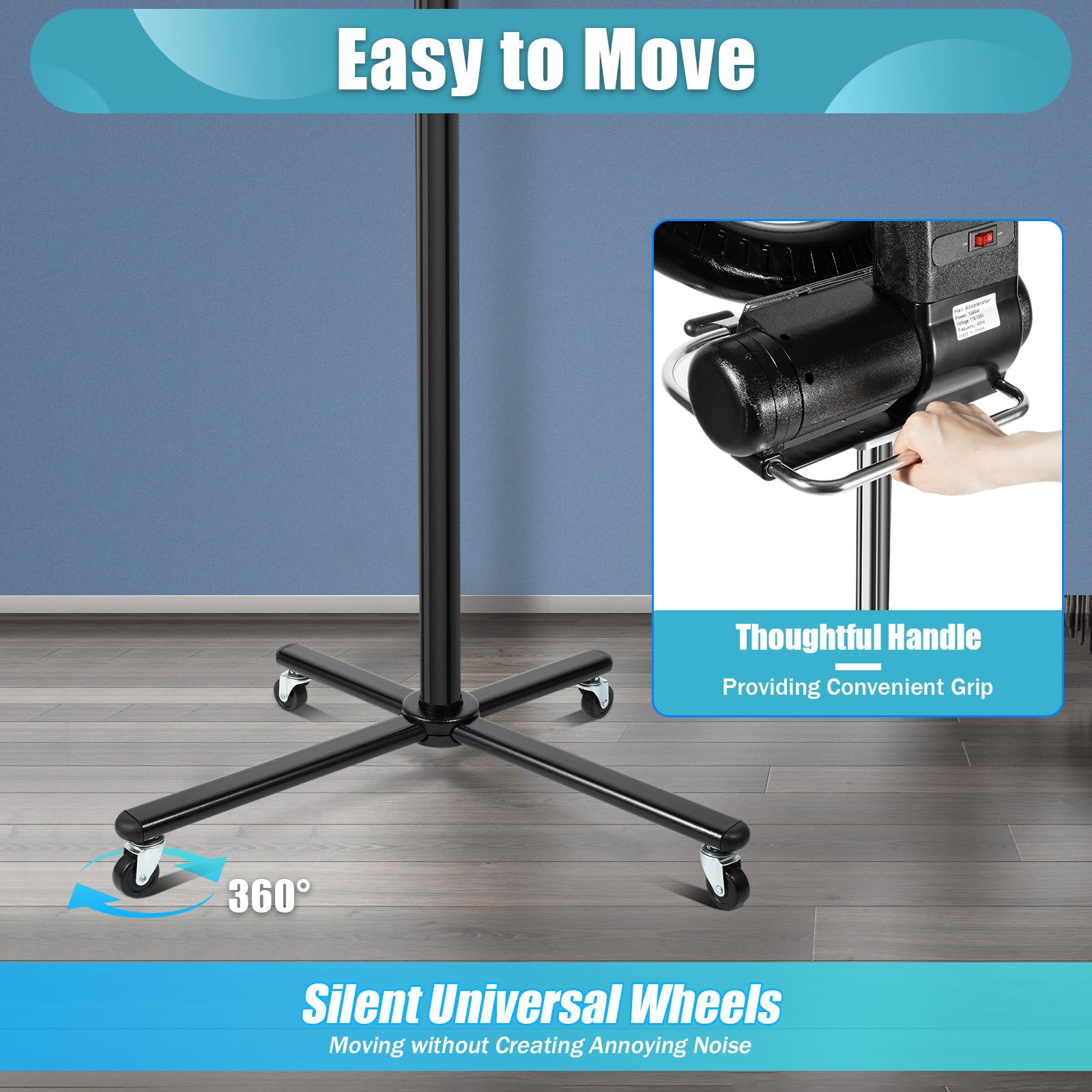 Stable & movable: The iron crucifix - shaped base of stand hair dryer offers great stability, while the stainless - steel adjustment rod ensures firmness. Comes with a handle and four silent universal casters for easy movement