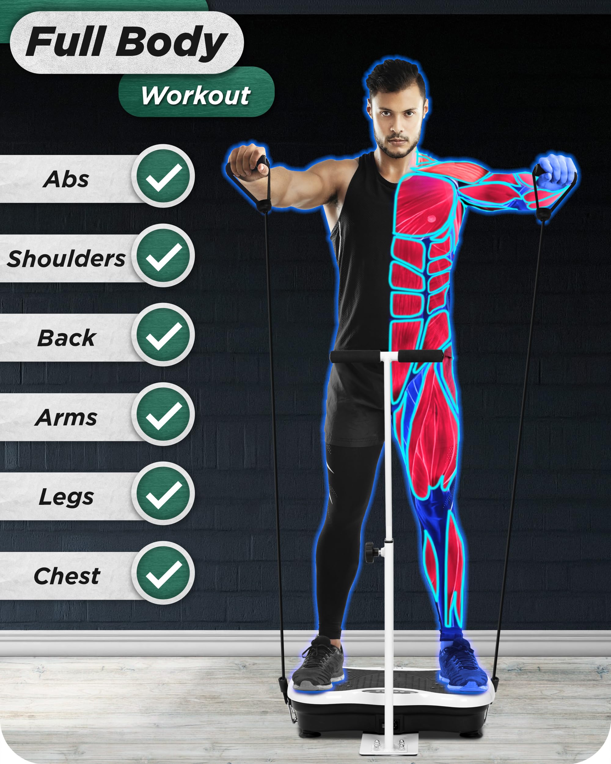 Full Body Workout: Engage your entire body with this vibration plate featuring a convenient waist-high adjustable handlebars that you can set between 27.4" & 38.6" high. Enjoy a comprehensive workout that targets various muscle groups and enhances muscle tone and strength
