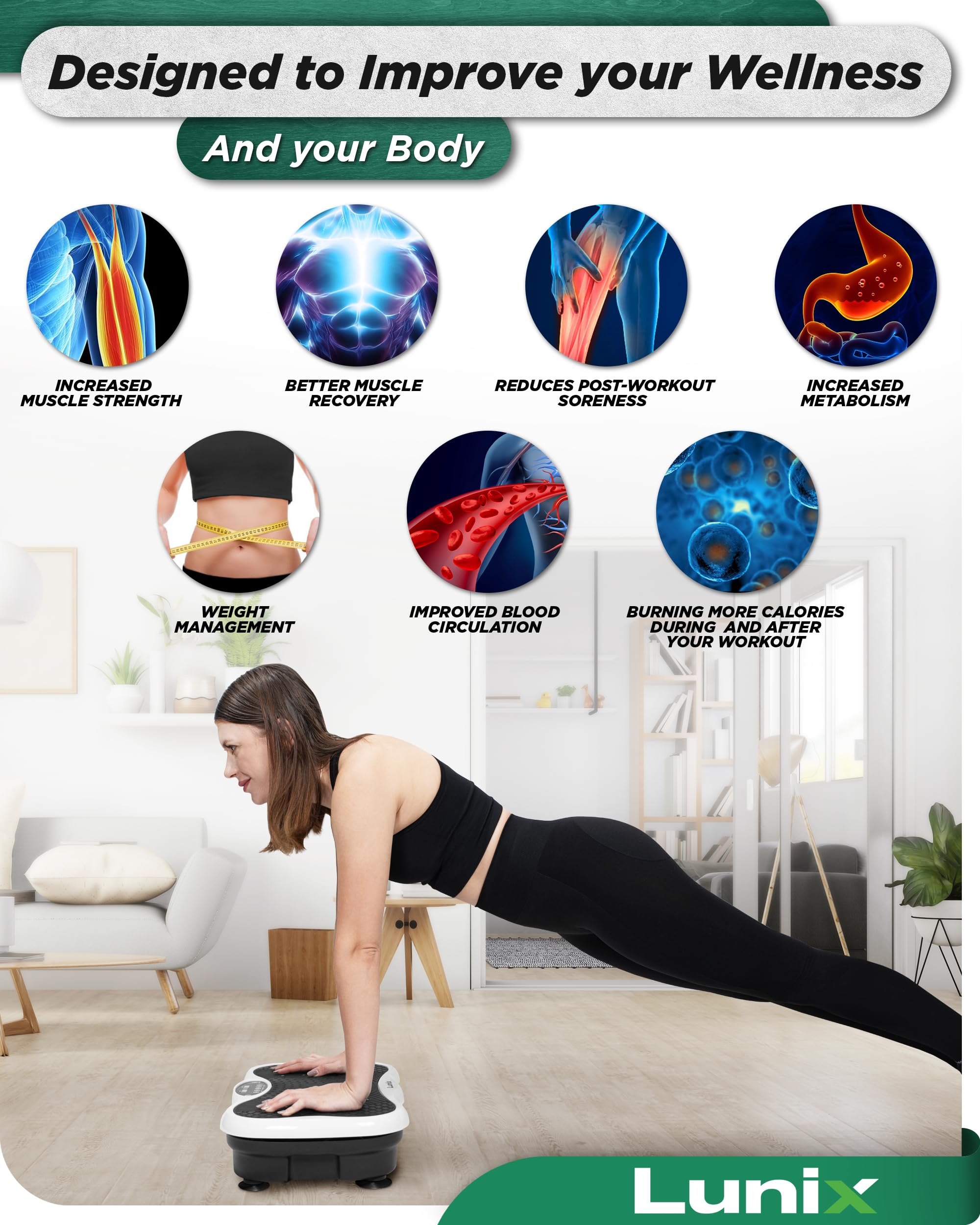 Enhance Your Wellness Experience: This vibration plate features integrated magnetic acupressure nodes to not only aid in stress relief but also provide a stimulating and uplifting workout environment. Immerse yourself in your favorite tunes while you work out, and allow the magnetic acupressure nodes to provide a relaxing massage-like experience. Reduce stress levels and promote a positive mindset while improving muscle strength and overall fitness.