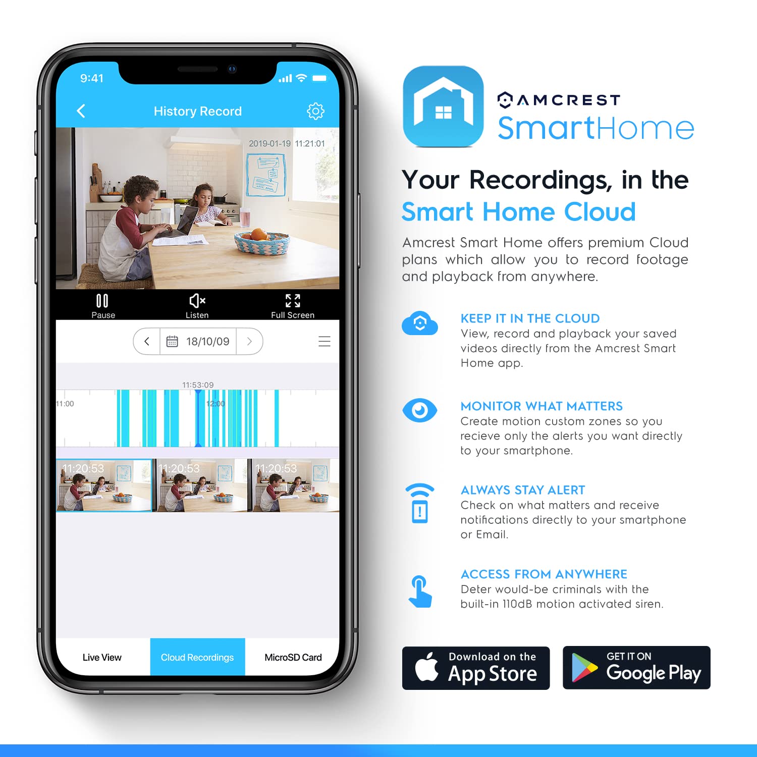 BABY MONITOR SOUND ALARM MODE, SHARING & ALEXA - Turn your Amcrest Smart Home camera into an adjustable VOX audio monitor to listen, view and be notified based on adjustable sound thresholds (such as baby crying, or dog barking). You can enable this mode directly from the live-view screen of the app. Works perfectly as a baby monitor or pet / dog camera and can be shared with multiple family members. Works with Alexa using the Amcrest Smart Home skill.