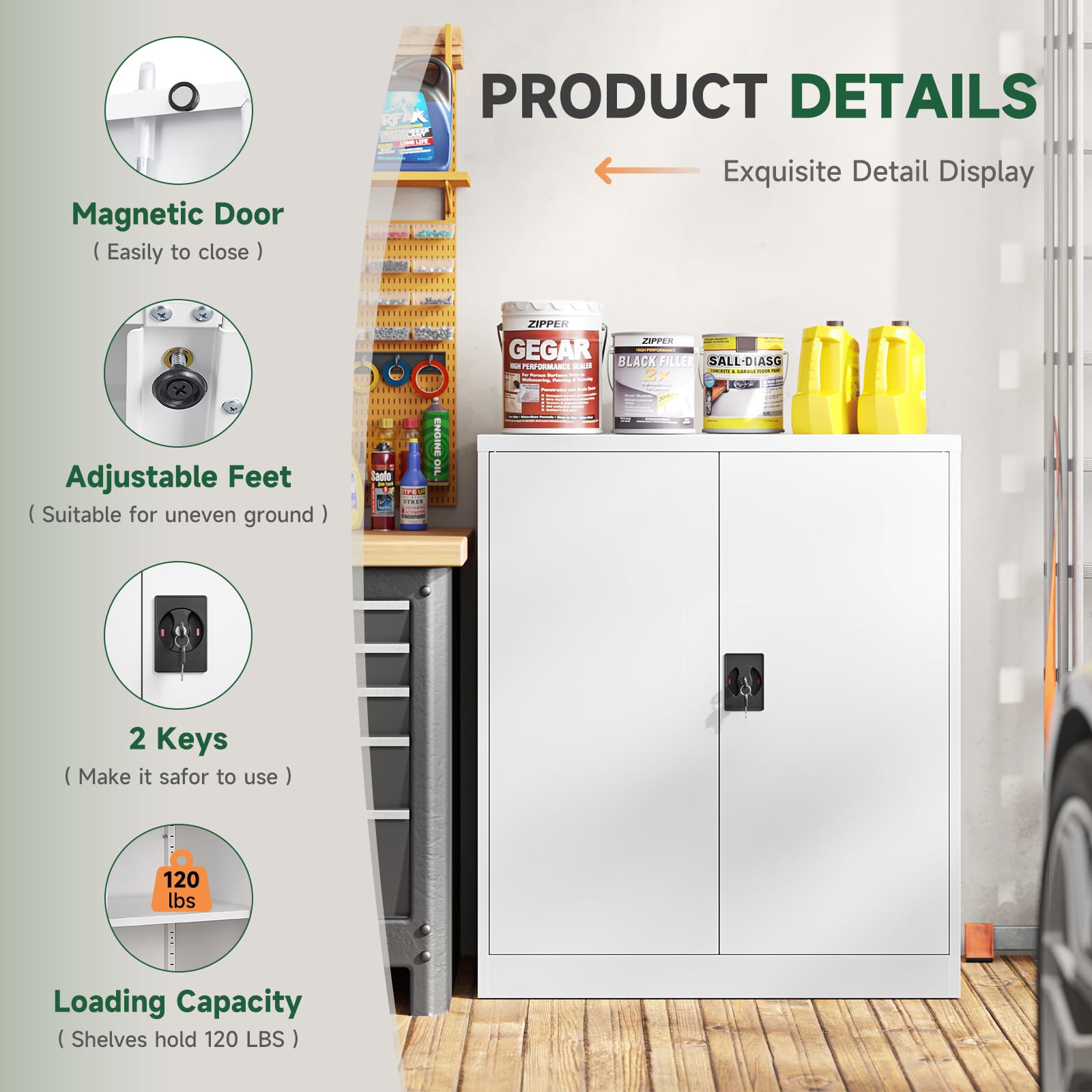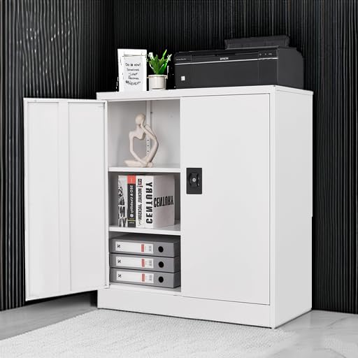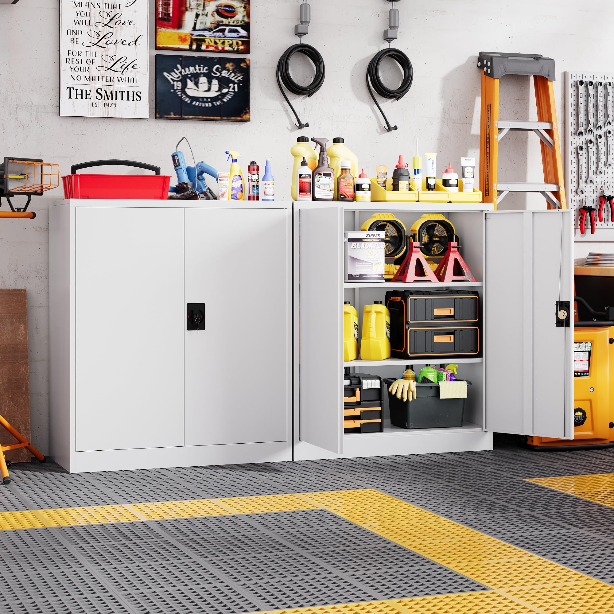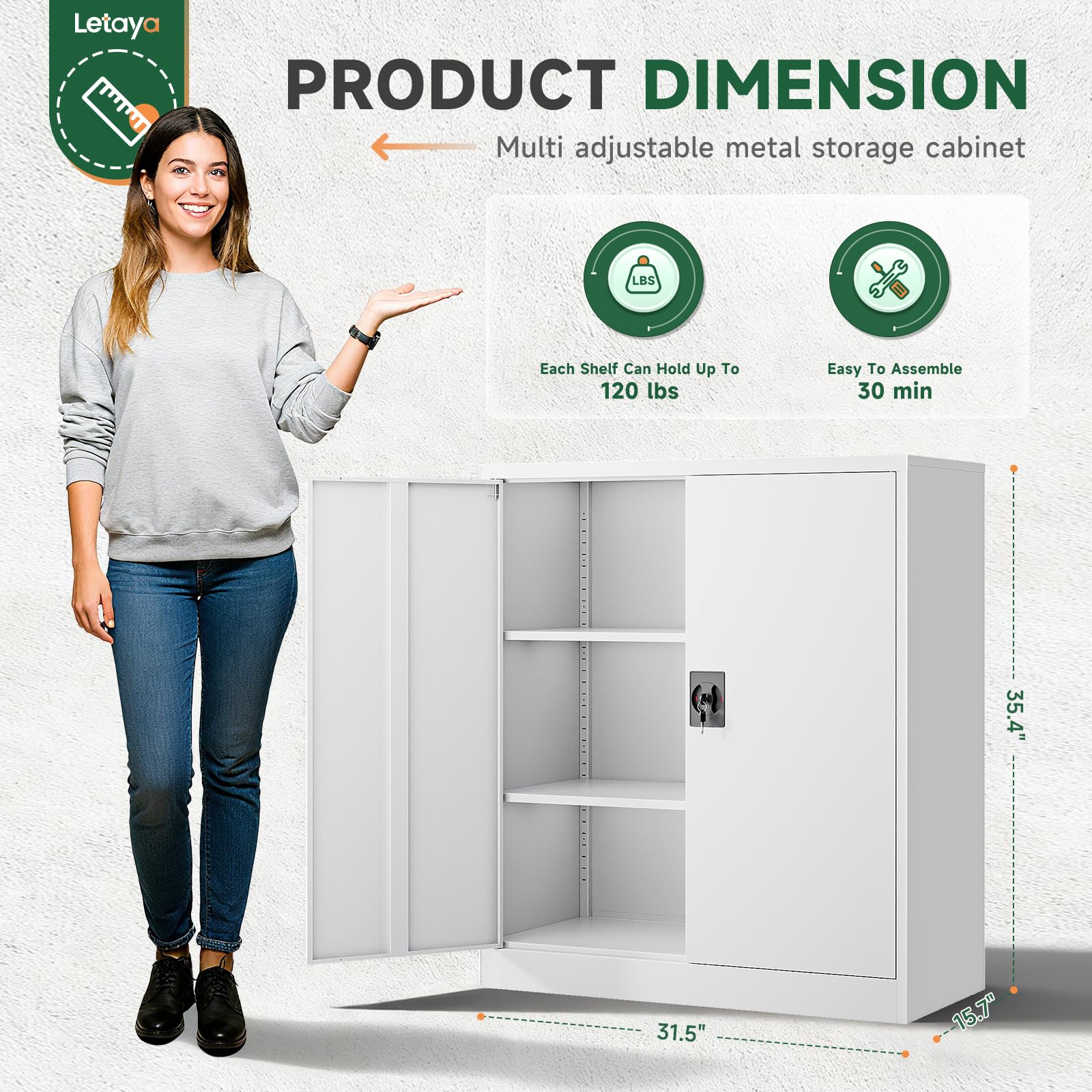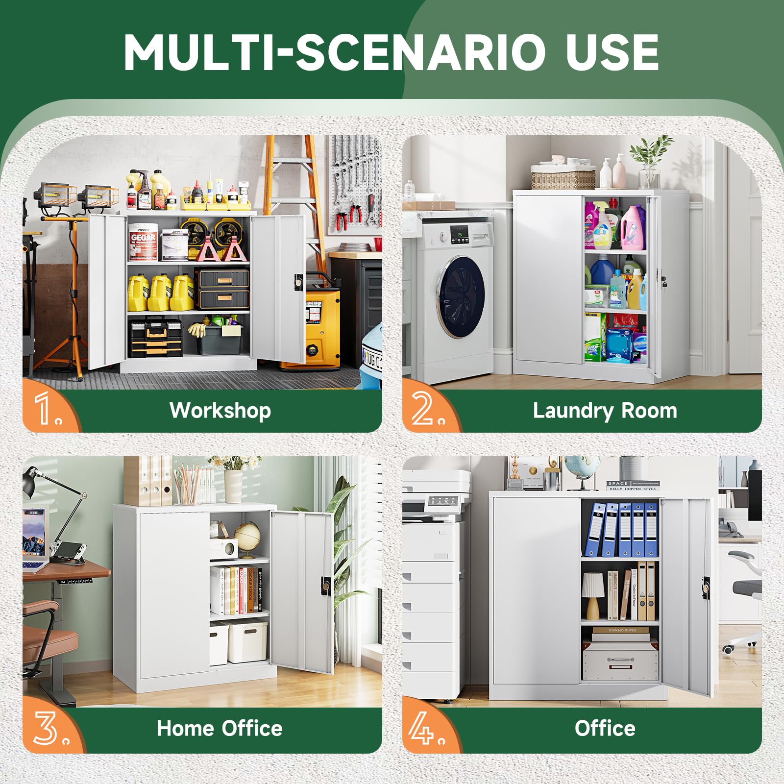 『Large Storage Space』:Steel storage cabinets H36 * W32 * D16 inch ,features 2 adjustable shelves,the shelves cabinet can hold up to 180lbs,36-inch counter height perfect for use in homes,offices,garages,schools,shops,warehouses or other commercial spaces.