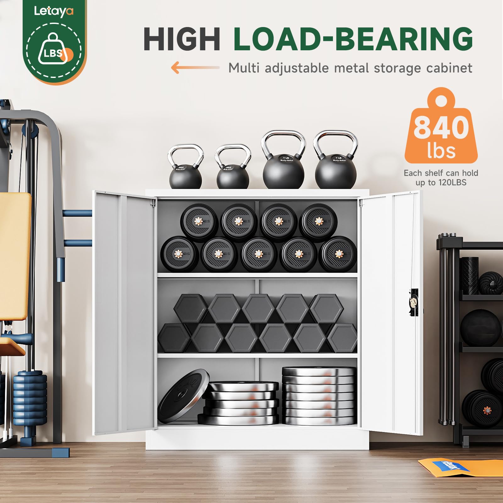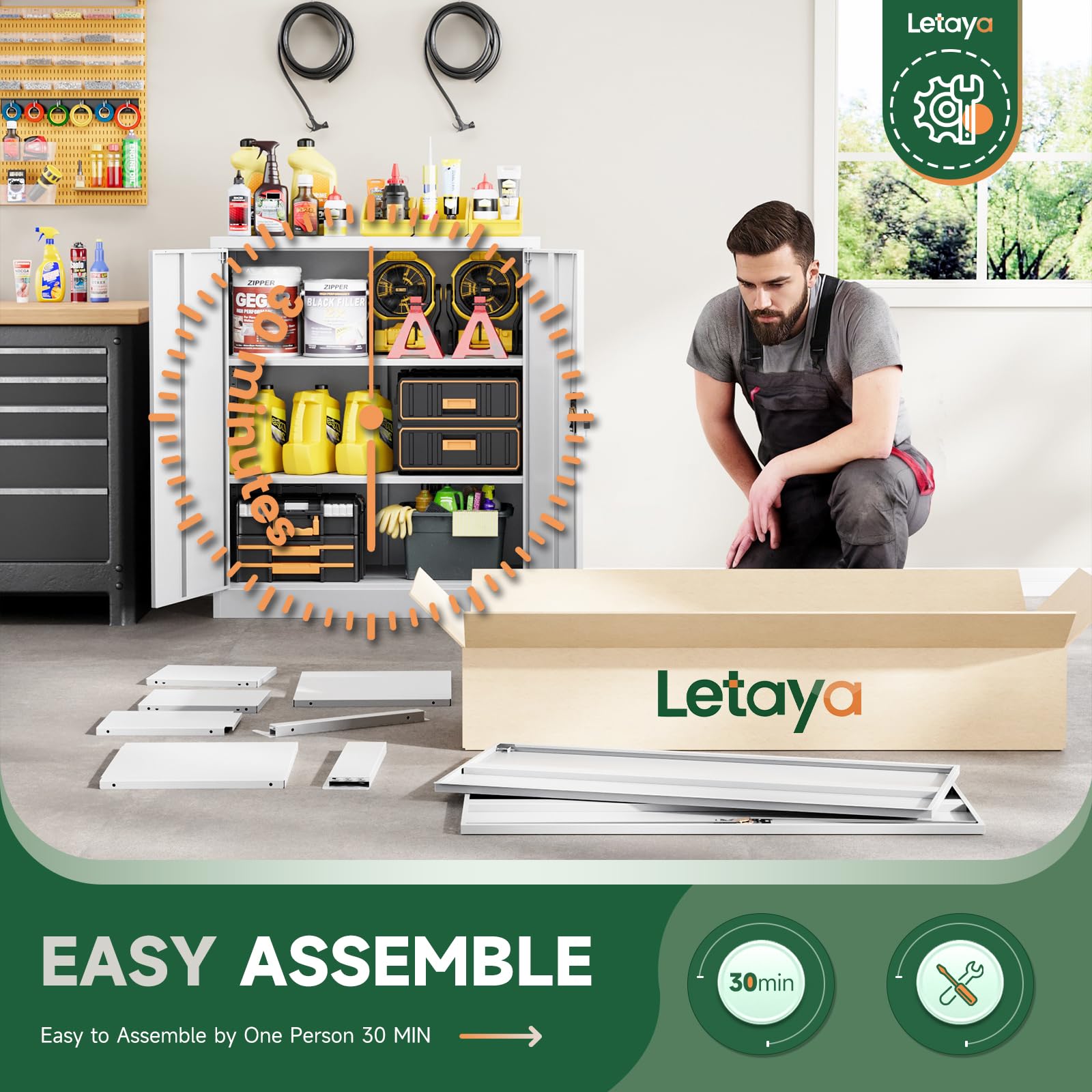 『High-Quality Material』:Letaya metal storage cabinet with whole-in-one reinforced heavy gauge steel deluxe welded frame,2 locking doors are also strengthened by with additional steel bars,whole steel frame thickness up to 0.8 mm,rugged and not easily deformed,plate adopted environmentally powder coated finish,Moisture proof ,capacity to resist corrosion and rust,Can be used for a long time.