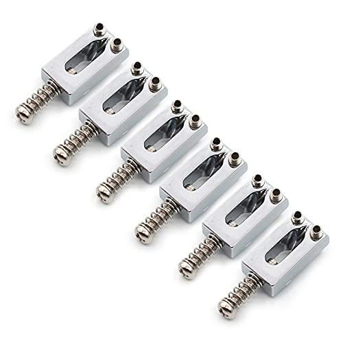 Specification: - Material: Zinc alloy - String spacing: 52.5mm (2-1/16") - Intonation springs and screws included - Set of six polished steel bridge sections with screws - Made from the highest-quality material, Fender bridge sections come with springs and screws (except where noted) - Bridge Saddles without screw: height: 10.5mm, width: 10.3mm, thickness: 5mm Package includes : 6Pcs Bridge Saddles and 1pc wrench