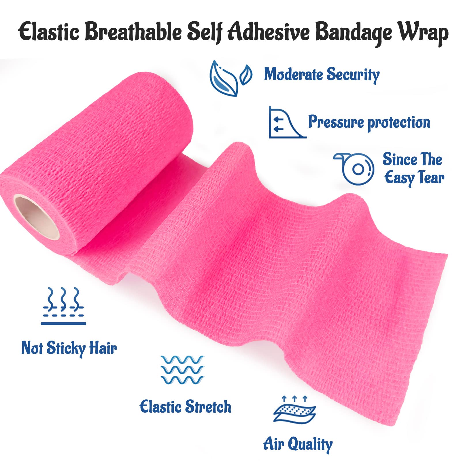 【No Residue & Effortless Application】 Unlike ordinary tapes, this self-adhesive bandage sticks only to itself, not skin or hair. Easily tear by hand without scissors—perfect for quick fixes during sports, workouts, or pet emergencies. No pins or clips needed!