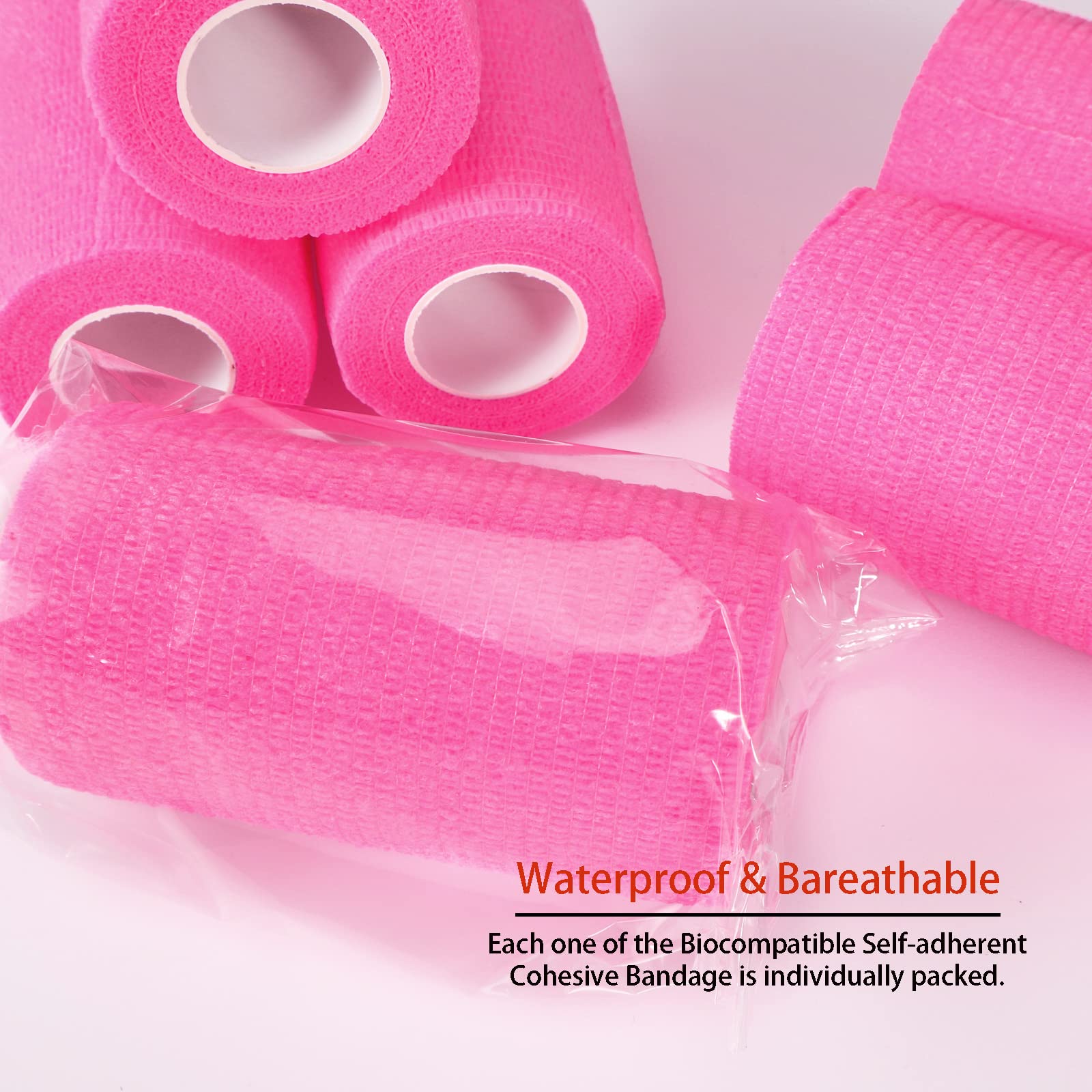 Self-Adhesive Bandage Wrap – 4" x 5 Yards, 24 Rolls Crafted with elastic non-woven fabric for reinforced joint support, this self-adherent tape grips securely without sticking to skin or hair. Ideal for sports injuries, wound care, or pet first aid, its sweat-proof coating and breathable fabric ensure comfort during prolonged use. Note: Contains latex – not recommended for sensitive users. Key Features: ✅ Latex-Enhanced Elasticity – Durable stretch for firm compression. ✅ No-Residue & Hand-Tearable – Adjust on-the-go, no scissors needed. ✅ Water-Resistant & Breathable – Stays put through sweat or light moisture. ✅ Multi-Use – Safe for humans (ankles, wrists) and pets (paws, limbs). ✅ Hygienic Individually Wrapped Rolls – Store anywhere, ready for emergencies.