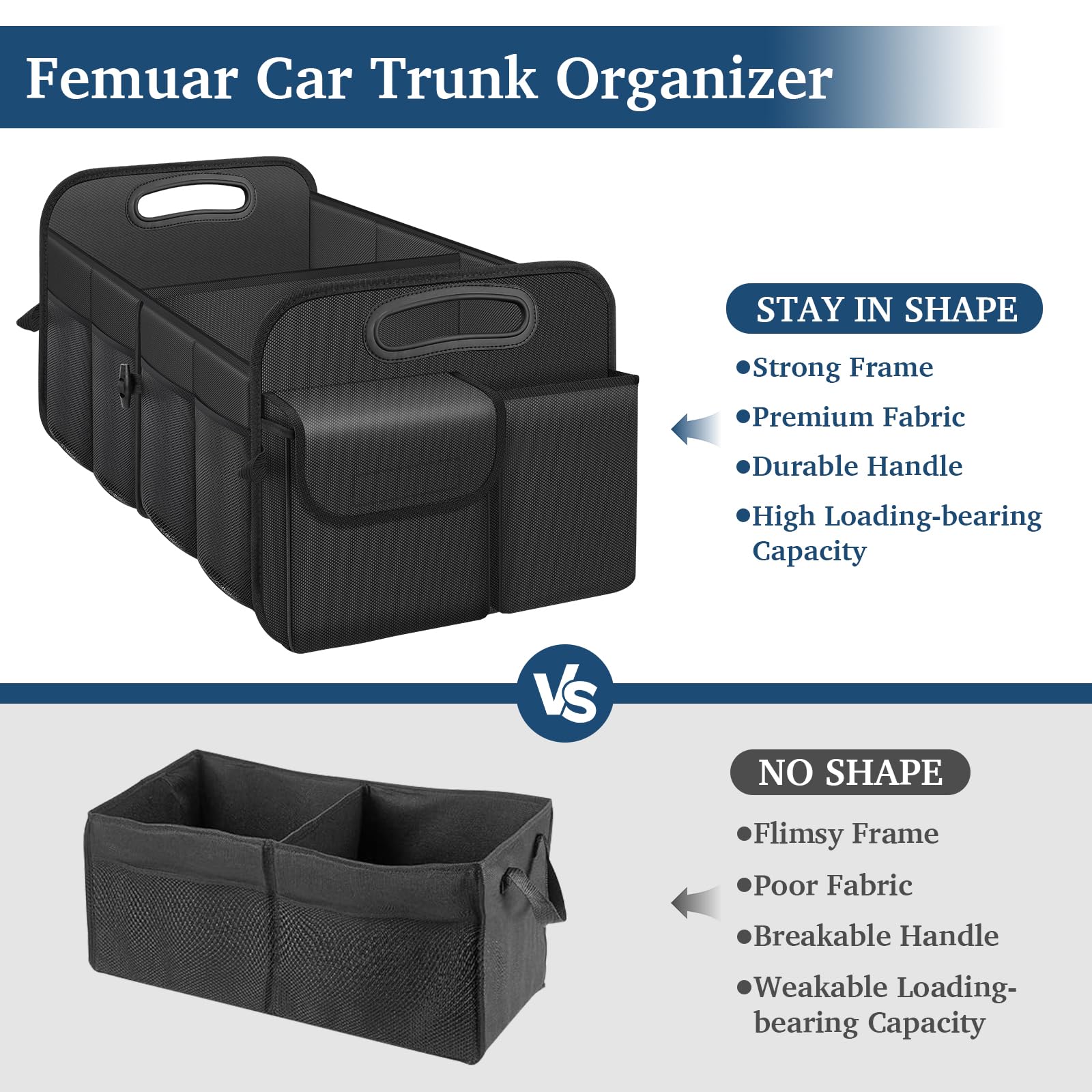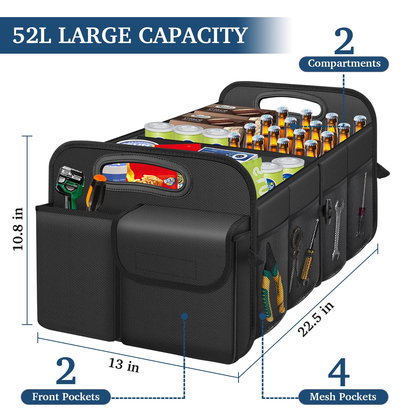【Trunk Organizer for Car】:This is the optimal solution for maintaining a clean car interior as car accessories. Suitable for all vehicle types, like trucks, SUVs, vans, jeeps, cars, etc., and it's fantastic for transporting and arranging groceries, toys, athletic equipment, tools, and more in your trunk. Eliminate trunk clutter situation with this car organizer.