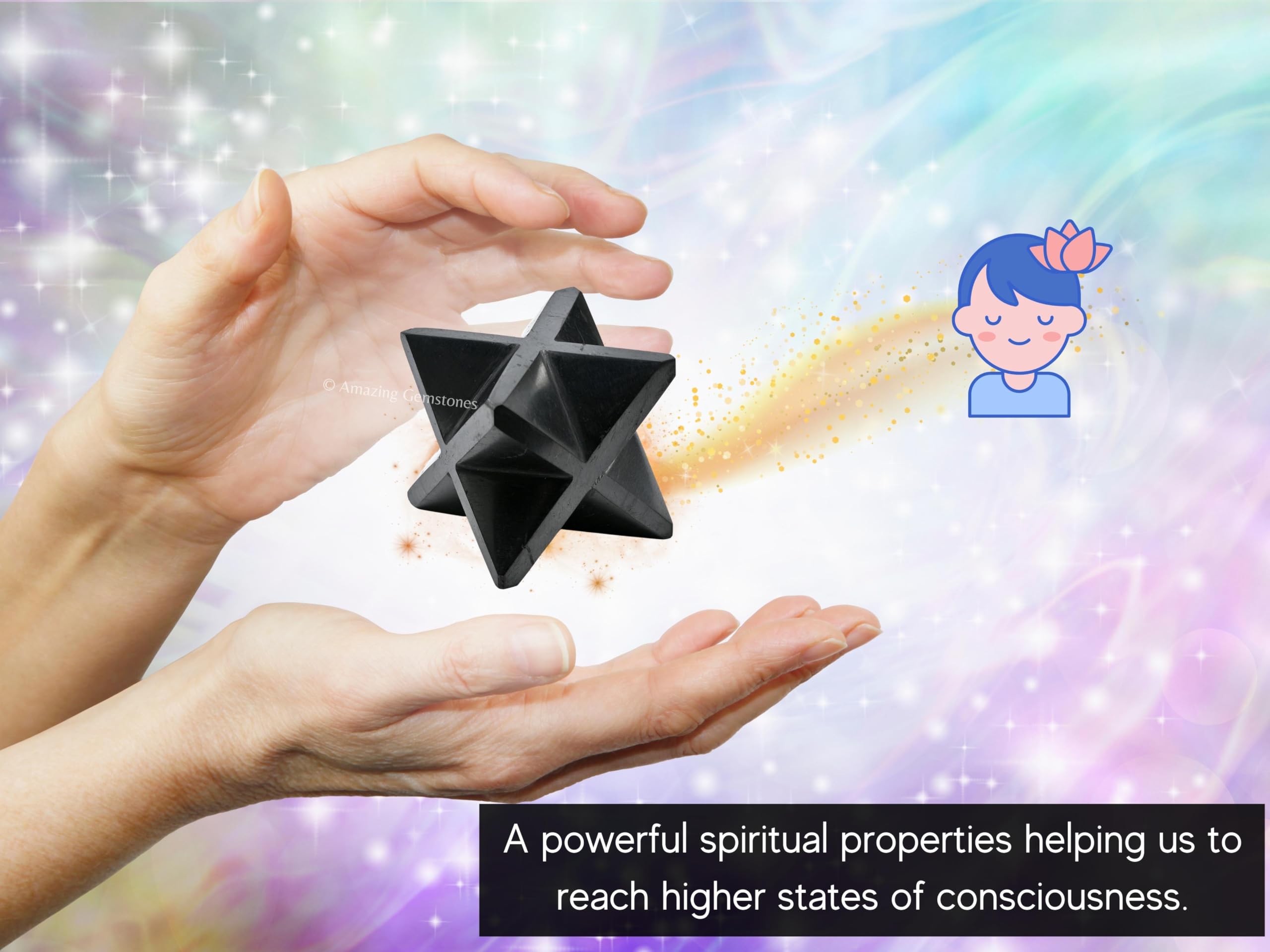 3D Metatron's Cube Design : The intricate 3D Metatron's Cube design of our merkaba crystal enhances its visual appeal. Its precise geometry symbolizes balance and harmony, perfect for meditation or decorative use.
