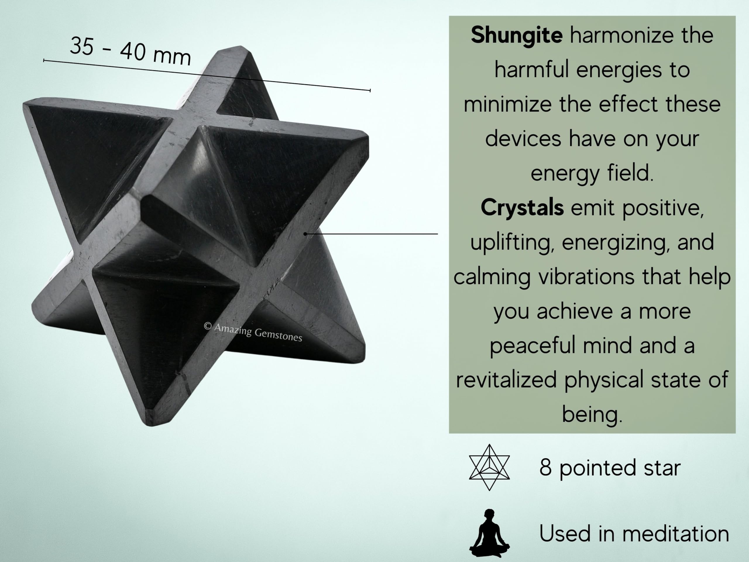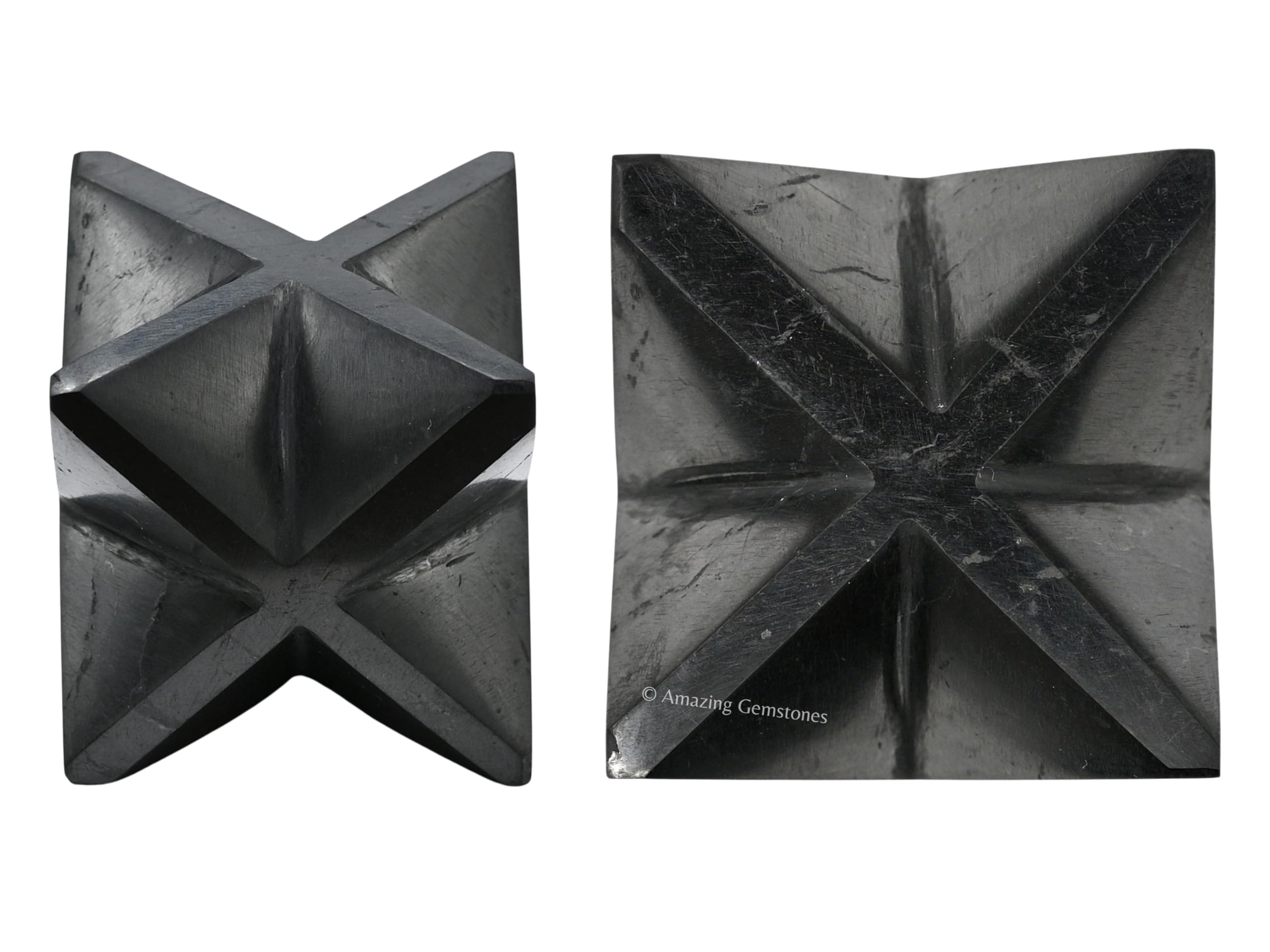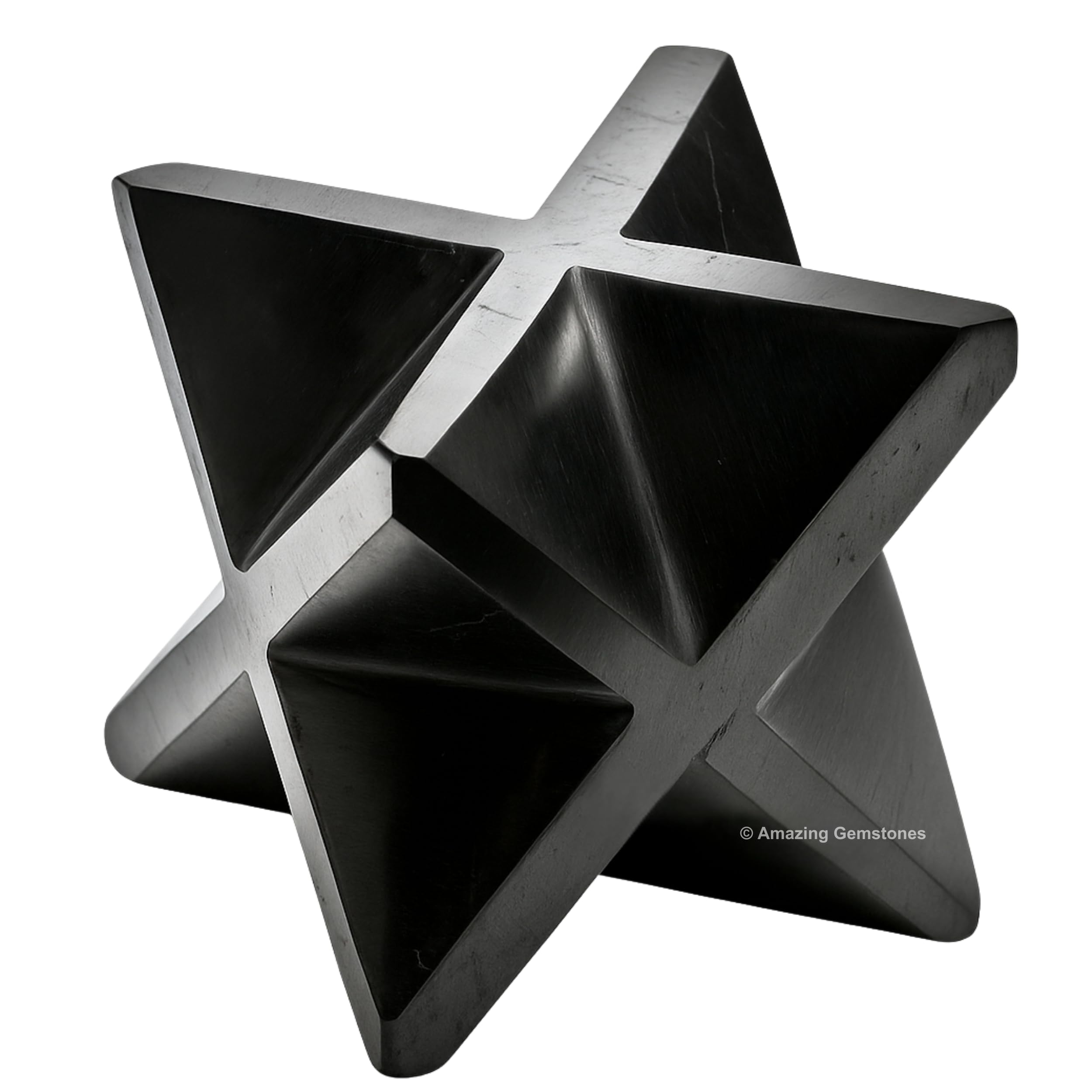 Exquisite Merkaba Star Stones : Our Shungite Merkaba showcases an exquisite star stones gemstone, embodying the unique beauty of nature. This crystal's captivating patterns make it a magnificent addition to any collection.