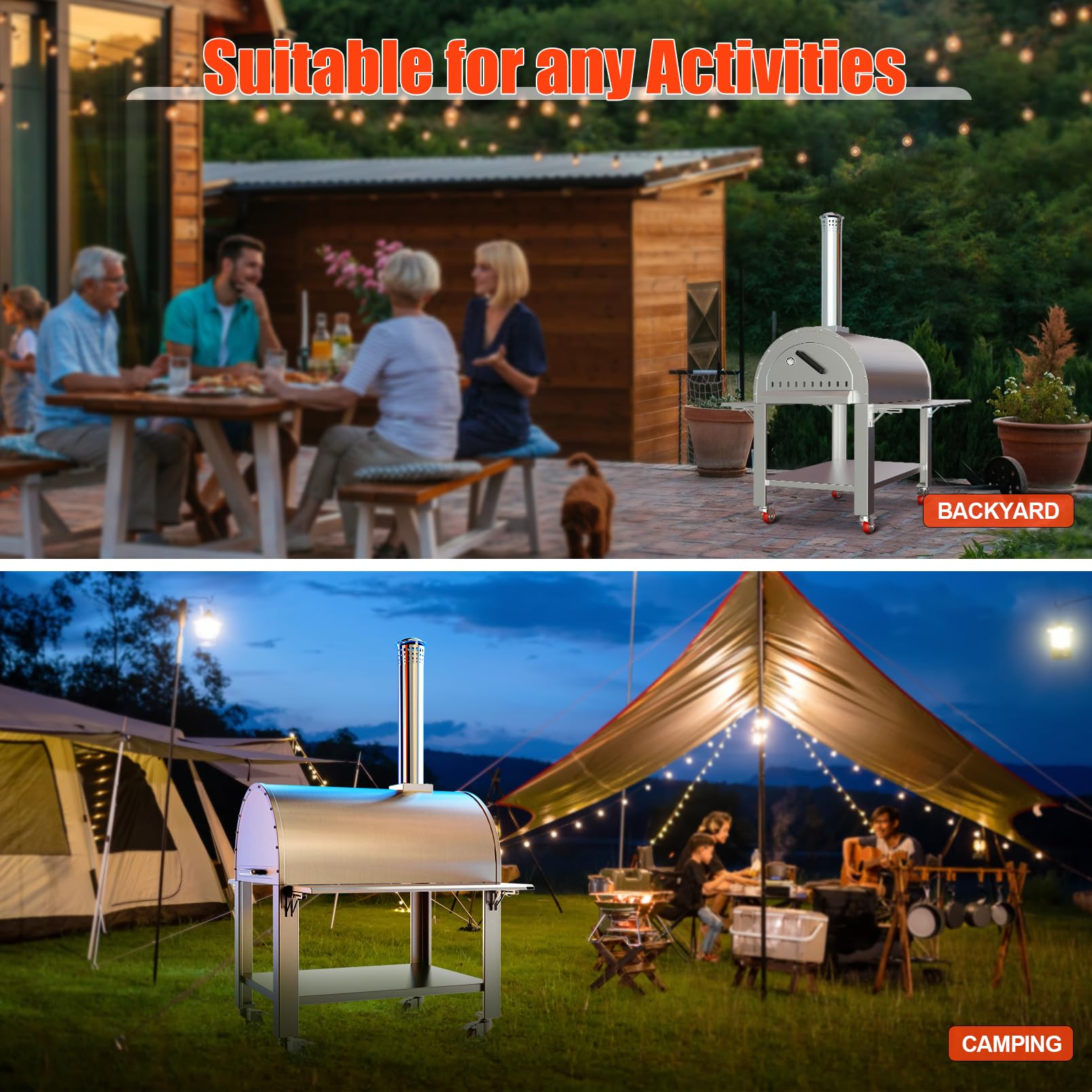 Commercial Capacity for Home Use: With 151L of cooking space, this oven handles everything from personal pizzas to large format cooking. The 4cm refractory stone provides exceptional thermal mass for even heating, while the stainless steel construction withstands years of outdoor use. Perfect for backyard entertaining, catering events, or RV camping trips.