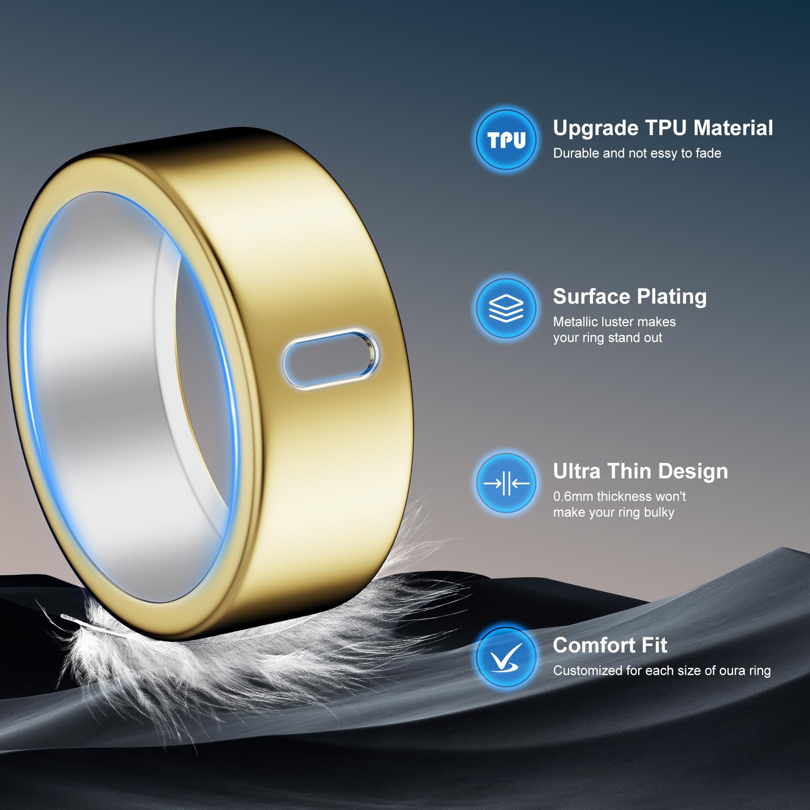 Premium TPU Material: Crafted from udgrade TPU with a premium electroplated coating, our Oura Ring case surpasses standard silicone—resistant to tearing, cracking, and wear for long-term protection. The advanced finish delivers a refined metallic luster, blending rugged strength with sleek sophistication.