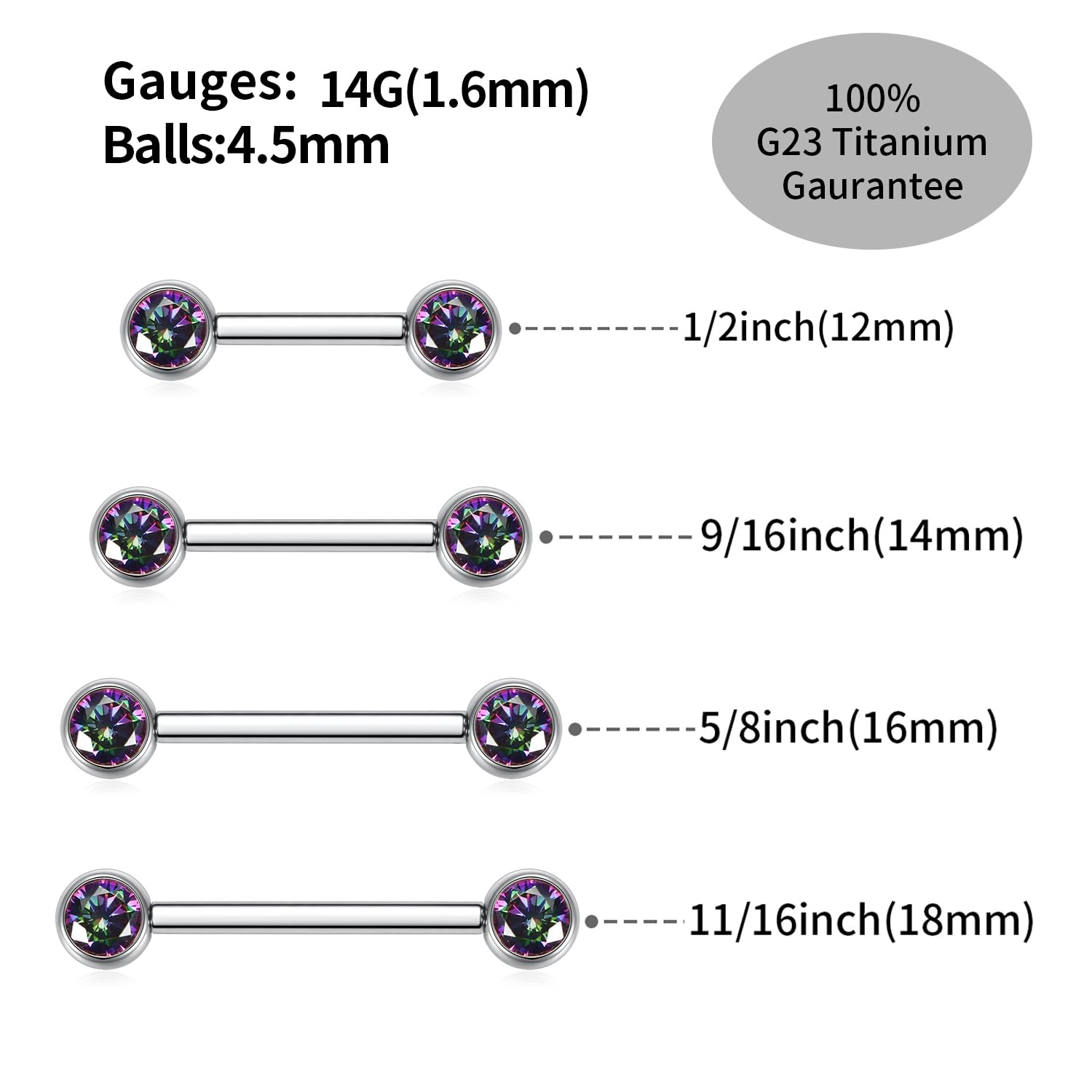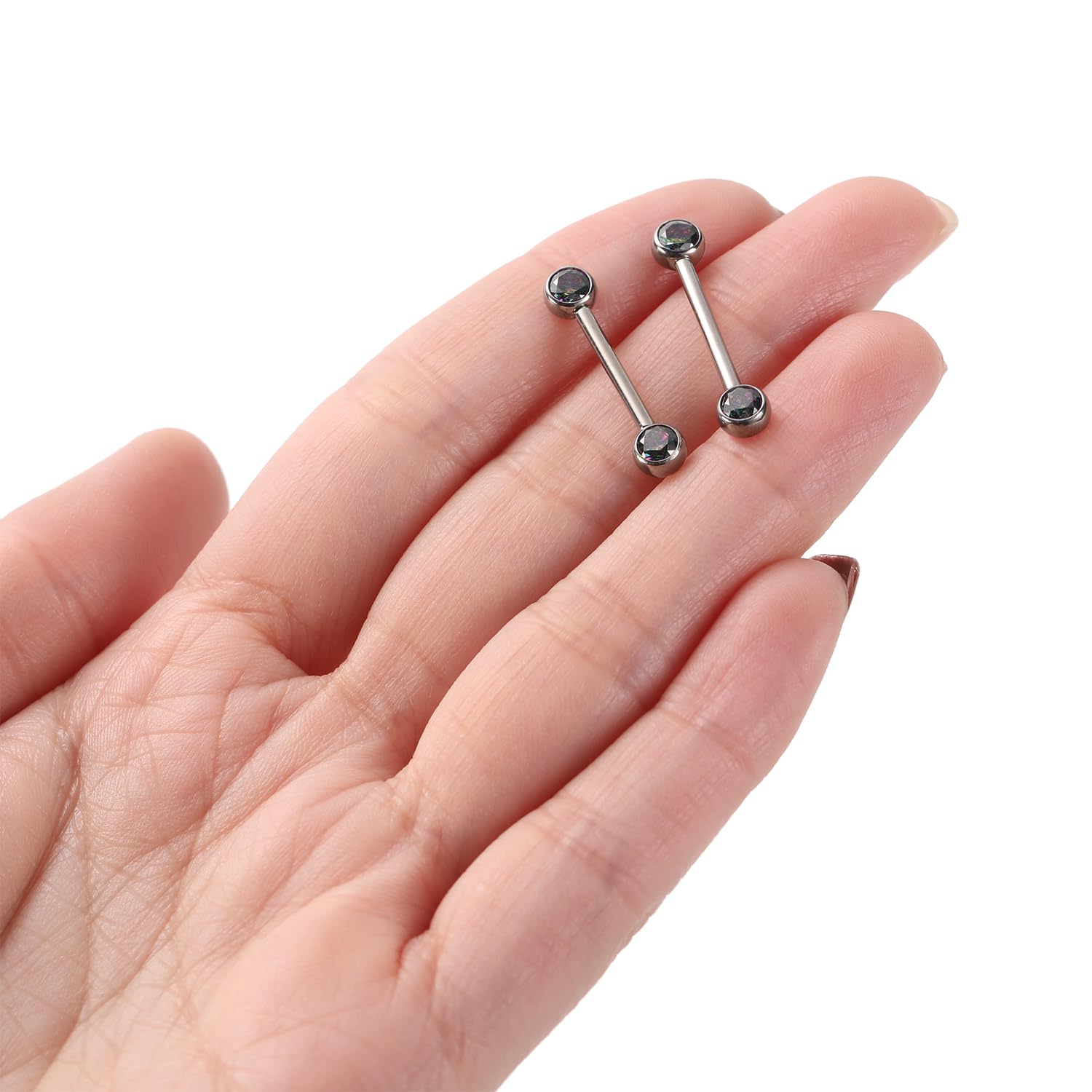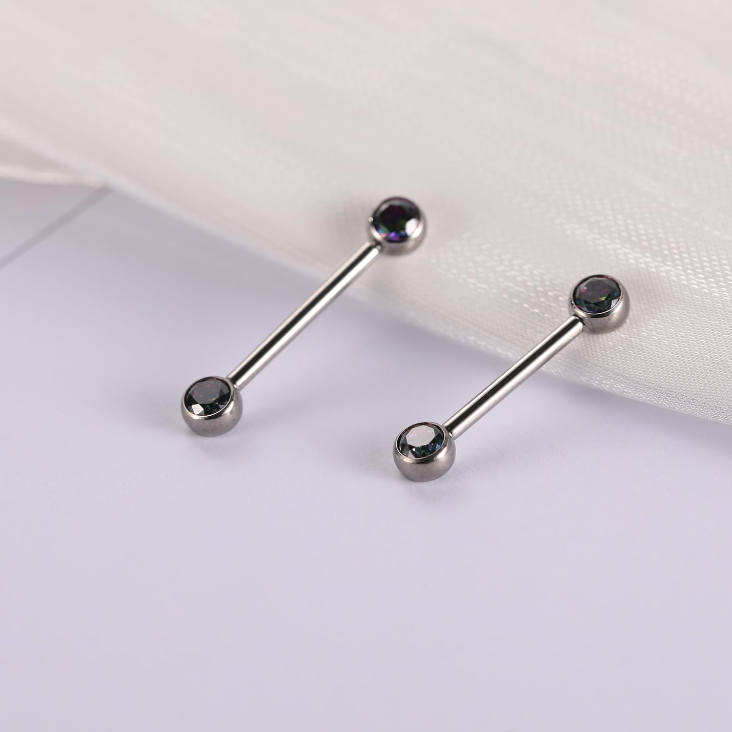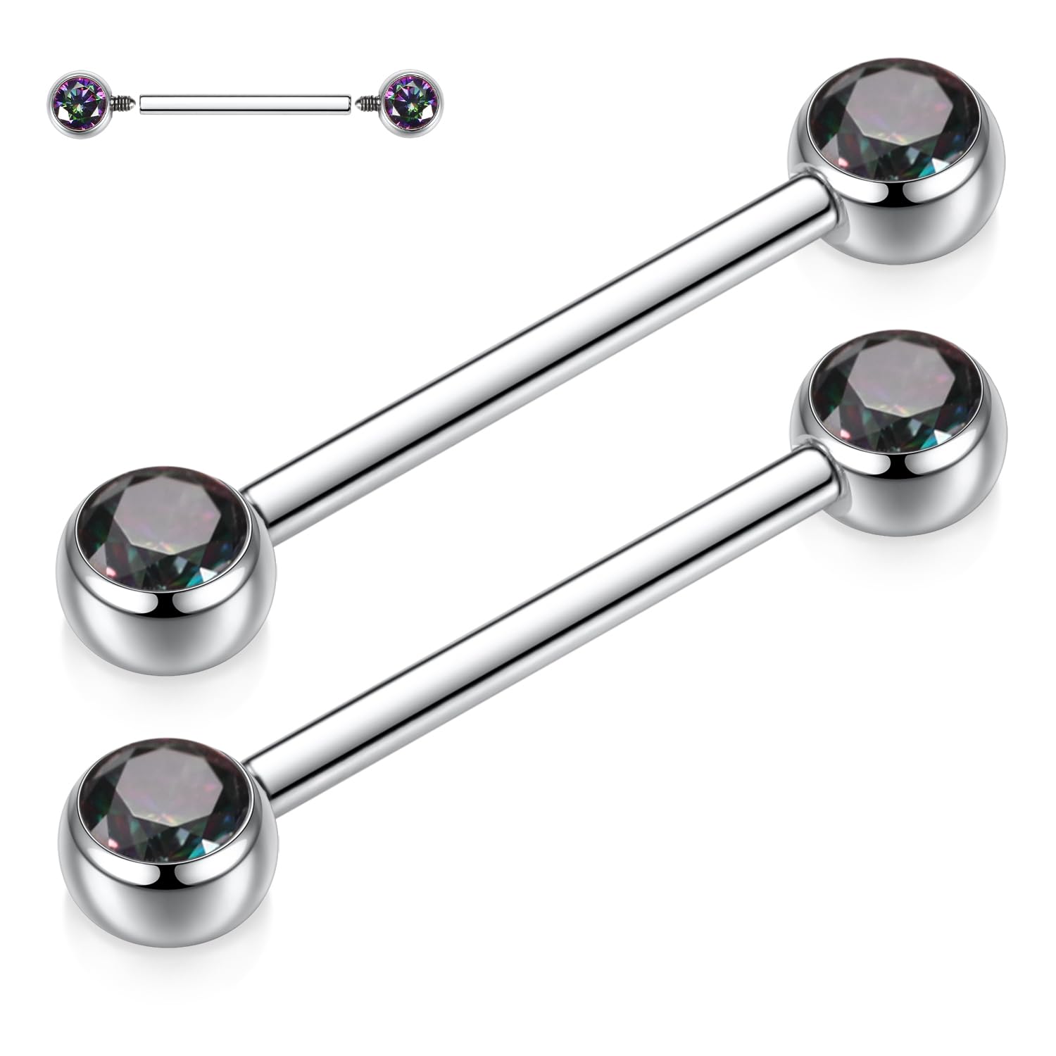 ✤SIZE&COLOR✤ Gauge: 14G (1.6mm); Nipple Barbell Length:1/2"(12mm); CZ Size: 5mm. Color:Silver with vitrail medium cube zircon.