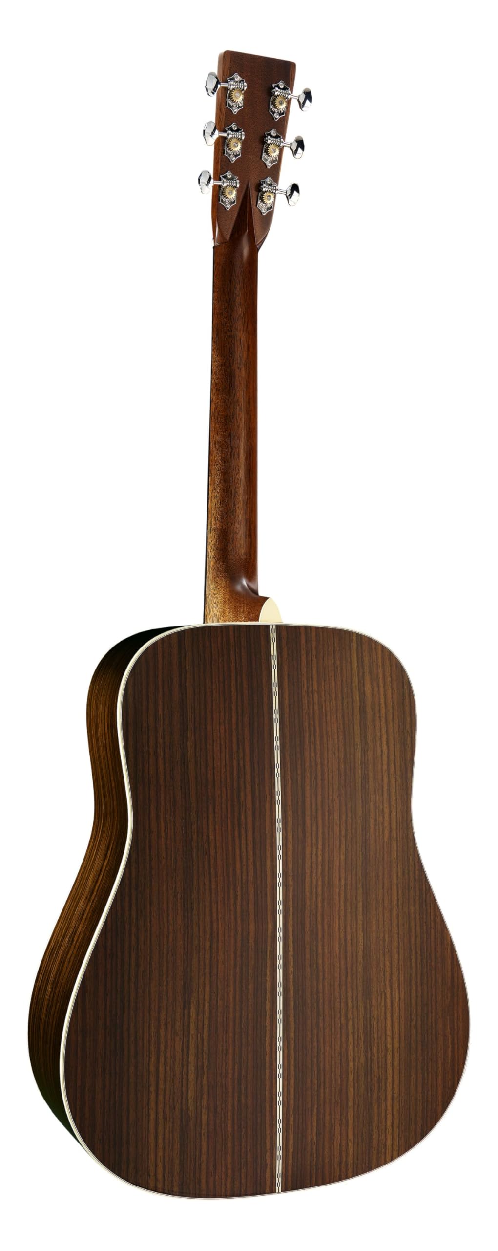 GLOSS ROSEWOOD BACK & SIDES: Crafted with East Indian rosewood back and sides, this guitar delivers deep bass, rich overtones, and a beautifully balanced tone. Known for its density and resonance, this tonewood enhances sustain and warmth, making it ideal for all playing styles. With its striking dark brown, red, and purple hues, rosewood not only sounds incredible but also looks stunning.
