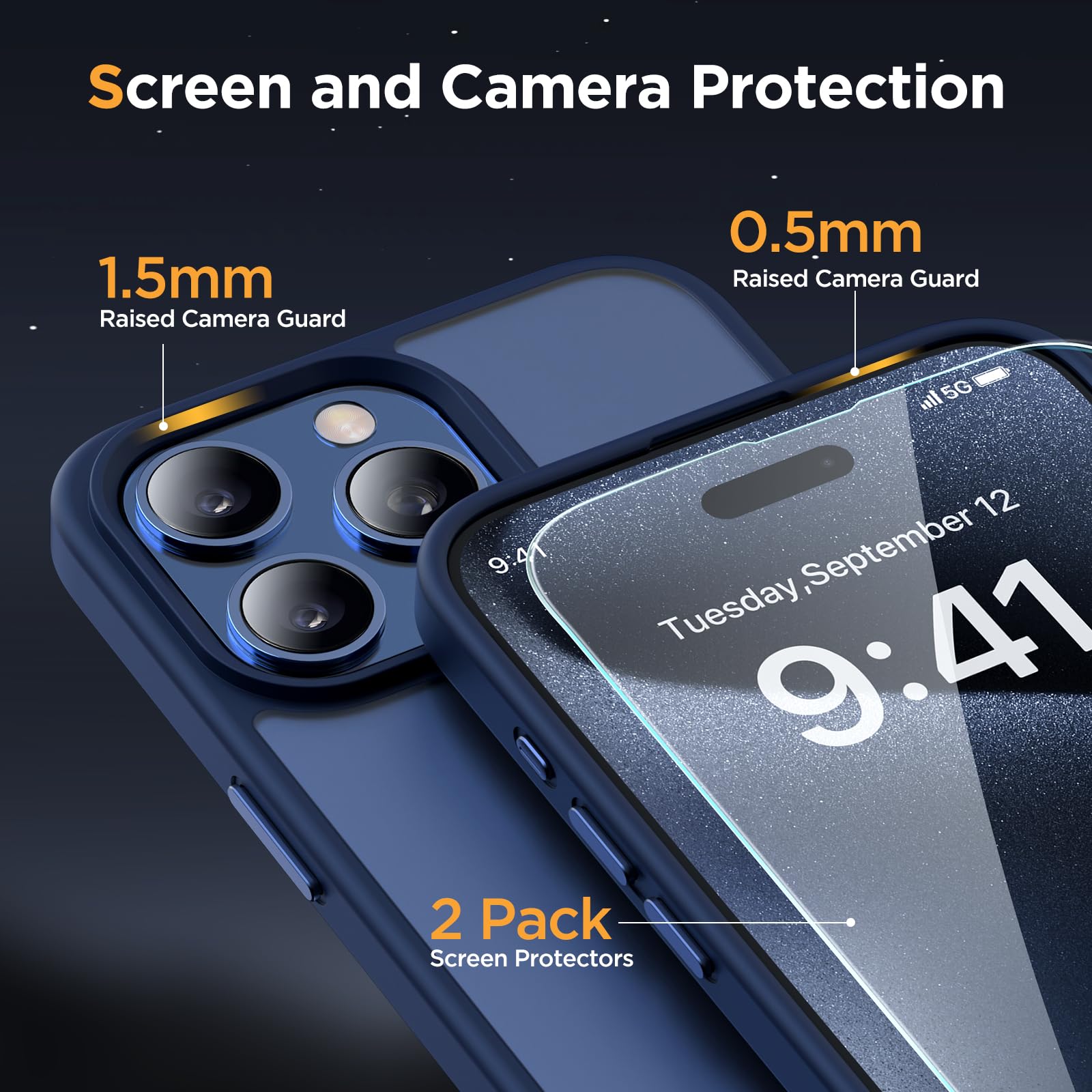 [Rugged Camera and Screen Protection]: This phone case for iPhone 13 Pro comes with 2 high-quality tempered glass screen protectors included in the package. The camera frame is raised by 1.5mm to safeguard the camera lens, preventing dust accumulation and preserving the camera's original performance. Additionally, the screen protectors effectively shield the screen from scratches, ensuring comprehensive protection for your phone.