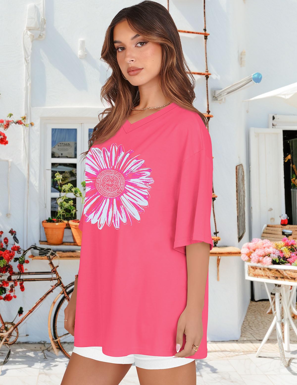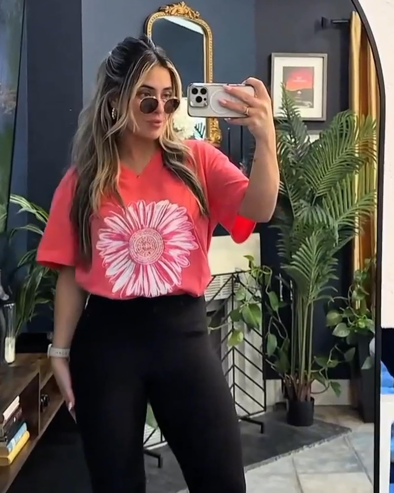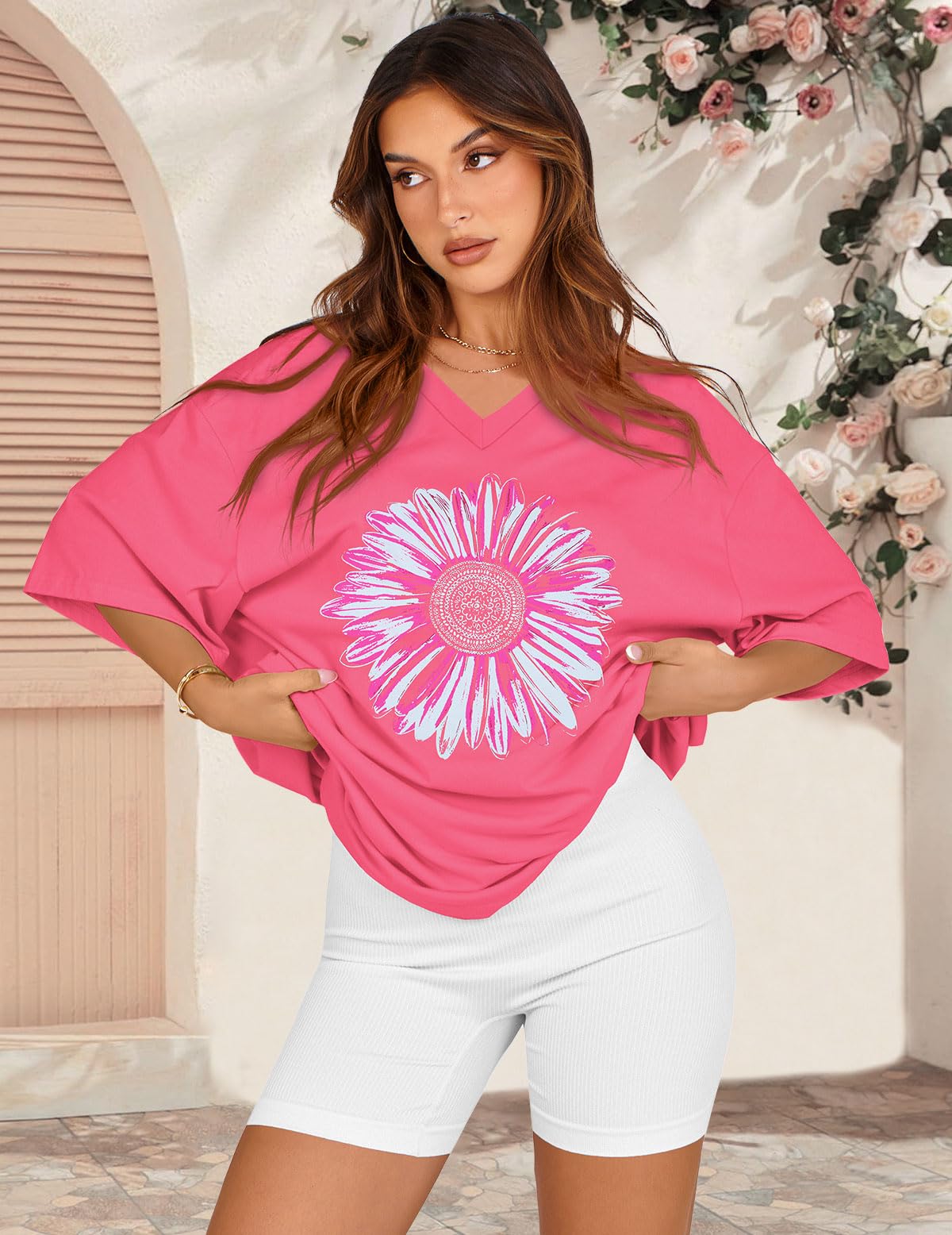 Match: Graphic tees for women can be effortlessly matched with various garments, such as yoga pants, leggings, shorts, skirts, or jeans, Oversized graphic tees for women can also be adorned with sunglasses or necklaces to boost your elegance