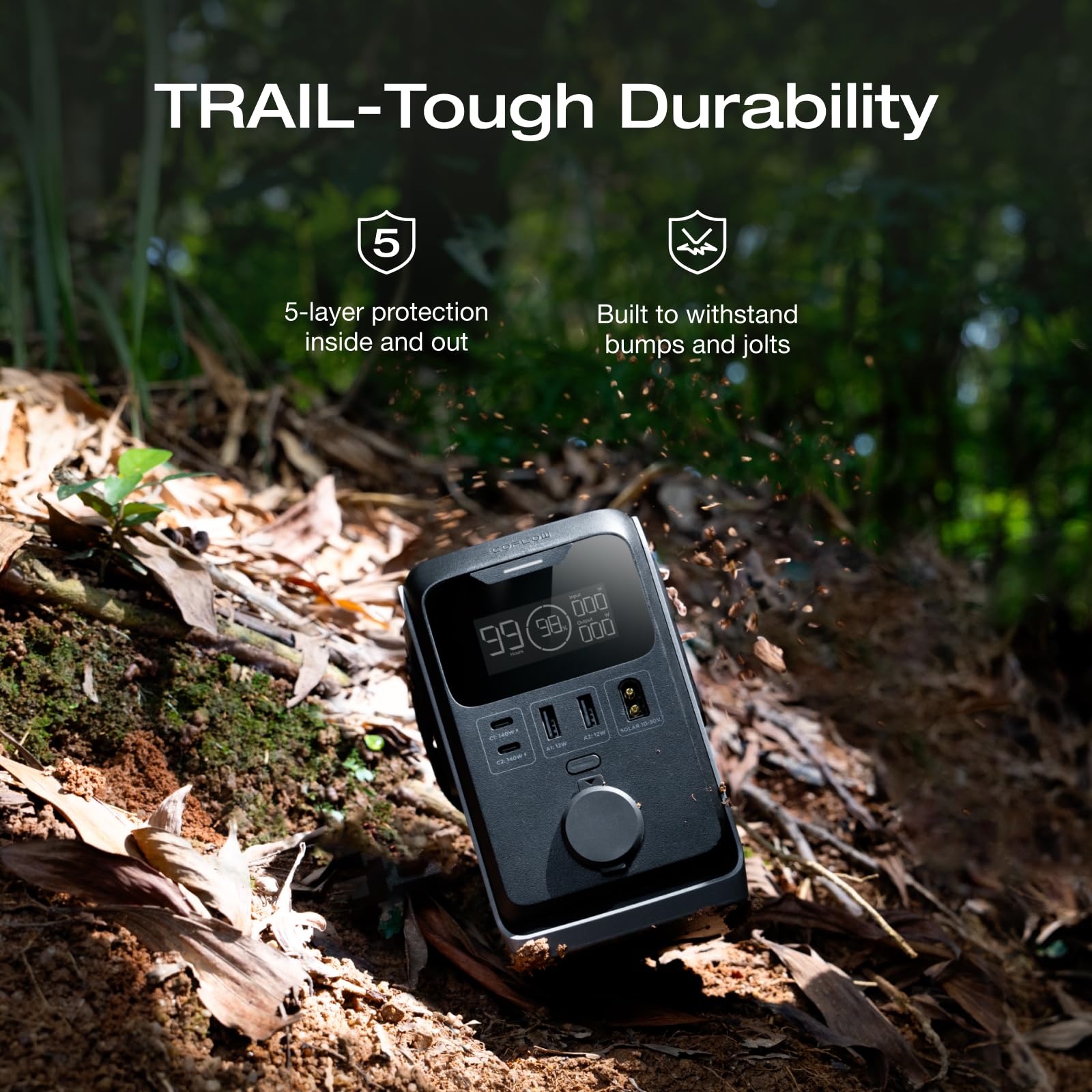 Ultra-Compact & Lightweight: At 48% smaller and 27% lighter than other portable power stations,* the TRAIL 300 DC slips easily into your backpack without weighing you down. Take it anywhere—reduce your load by the equivalent of 1 liter of water, and enjoy true portable power for hiking, camping, or road trips * Compared to EcoFlow RIVER 3 in the same capacity range.