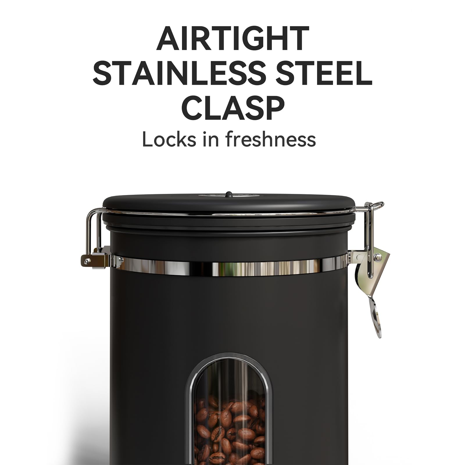 Date Tracker, Window, & Free Scoop:Keep your coffee fresh by setting storage or expiry dates with our date tracker on the lid. A handy window lets you see how many beans are left without opening the canister; Plus, we provide a free stainless steel coffee scoop that attaches with a hook
