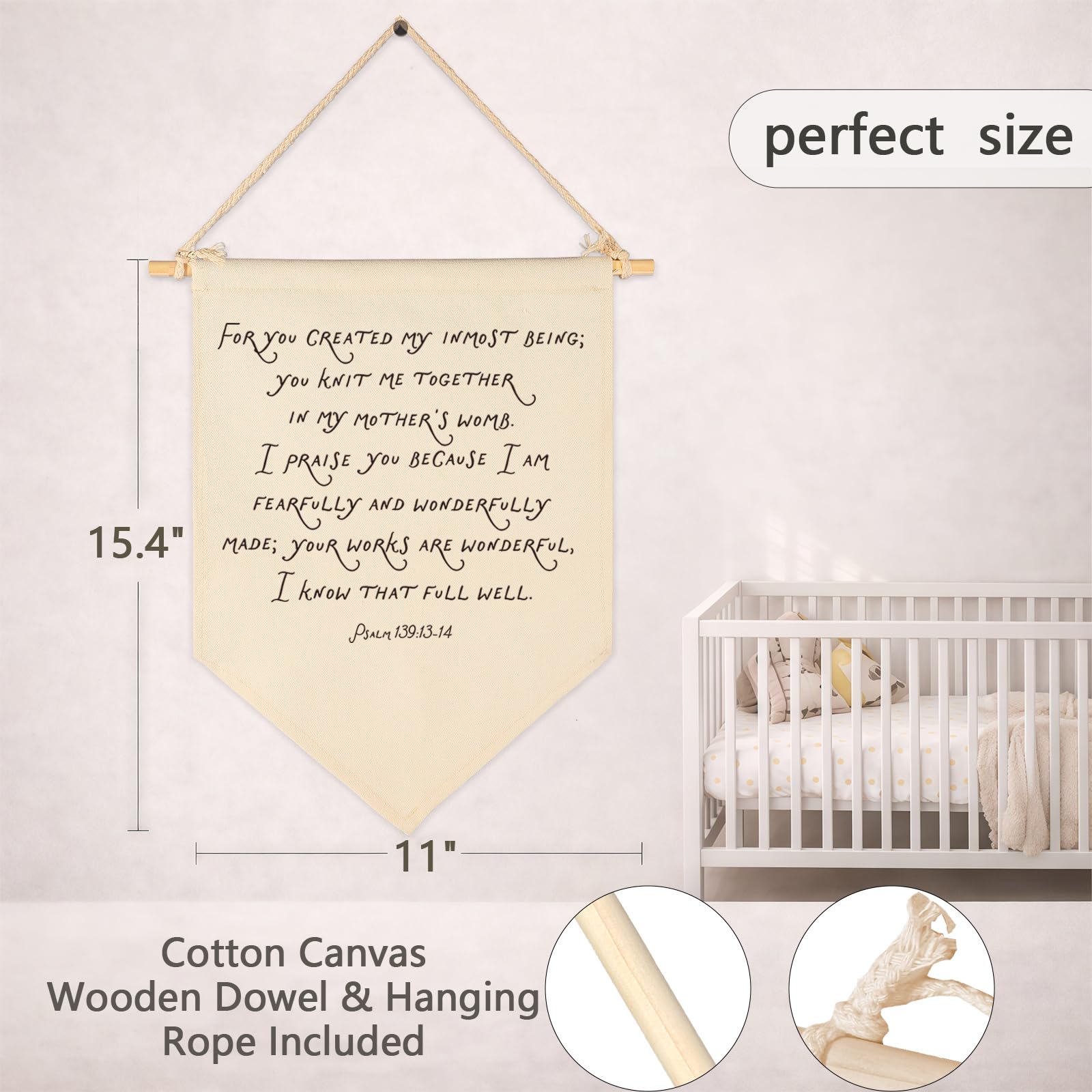 Durable natural cotton canvas banner adds lively color and cozy texture to nursery baby room wall decor, fade-resistant to stay bright year after year. Size 15.4" x 11" fits small or big spaces, perfect on a nursery wall, bookshelf, in a kids room, playroom, teen room, or reading nook. Ready to hang with pre-tied twine and 1 wooden stick, lightweight and easy to remove. A heartfelt gift for baby shower, birthday, Christmas, New Year.