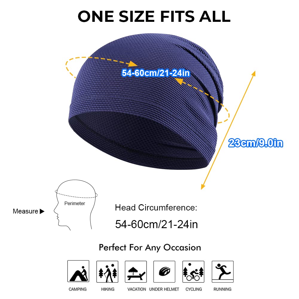 Stay Dry and Comfortable: Our sweat-wicking, lightweight, stretchy, and breathable skull cap for men helps keep sweat away from your eyes and forehead, so you can focus on your activity with less discomfort. Ideal as a sweat absorbing sports cap for football, workouts, and construction sites