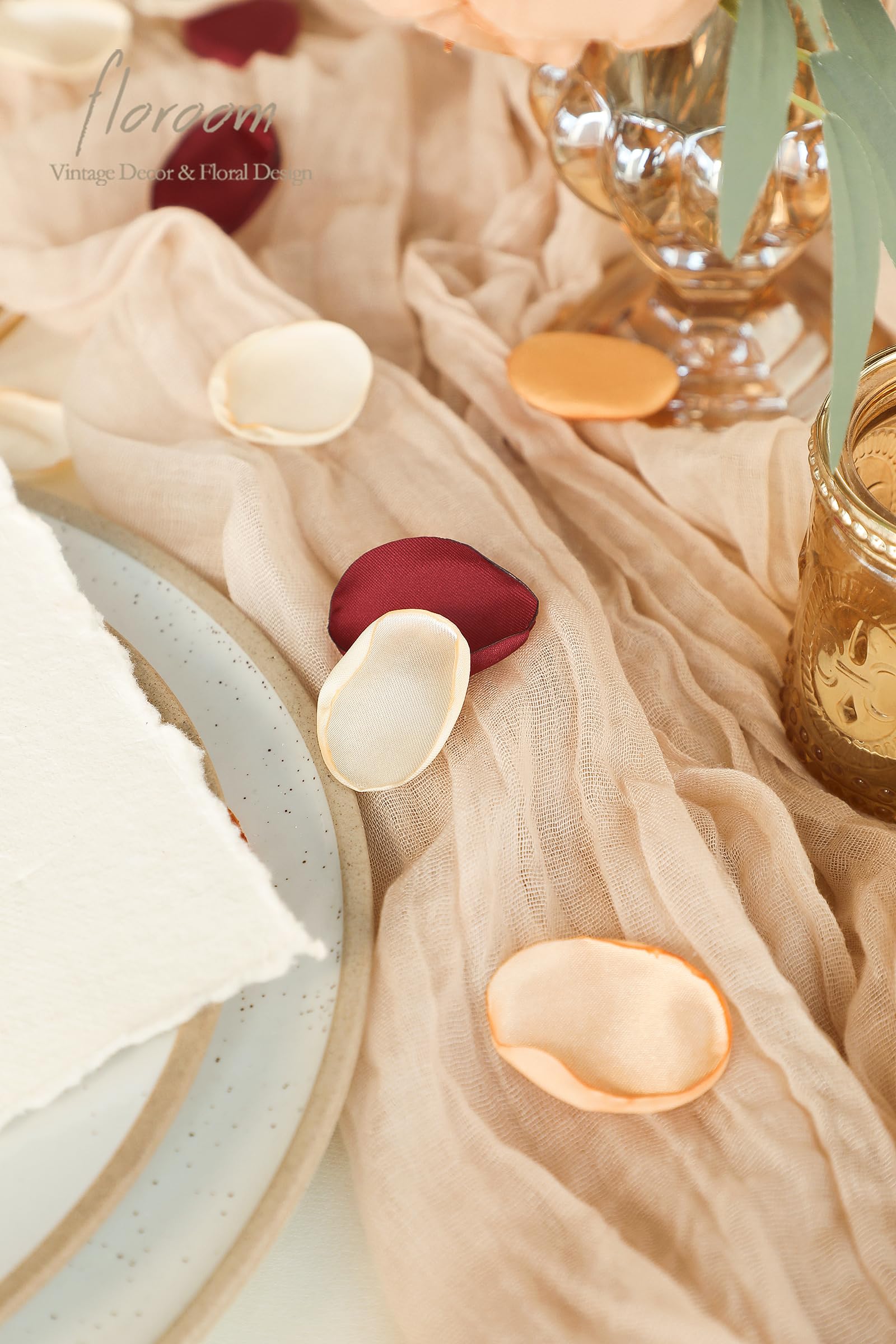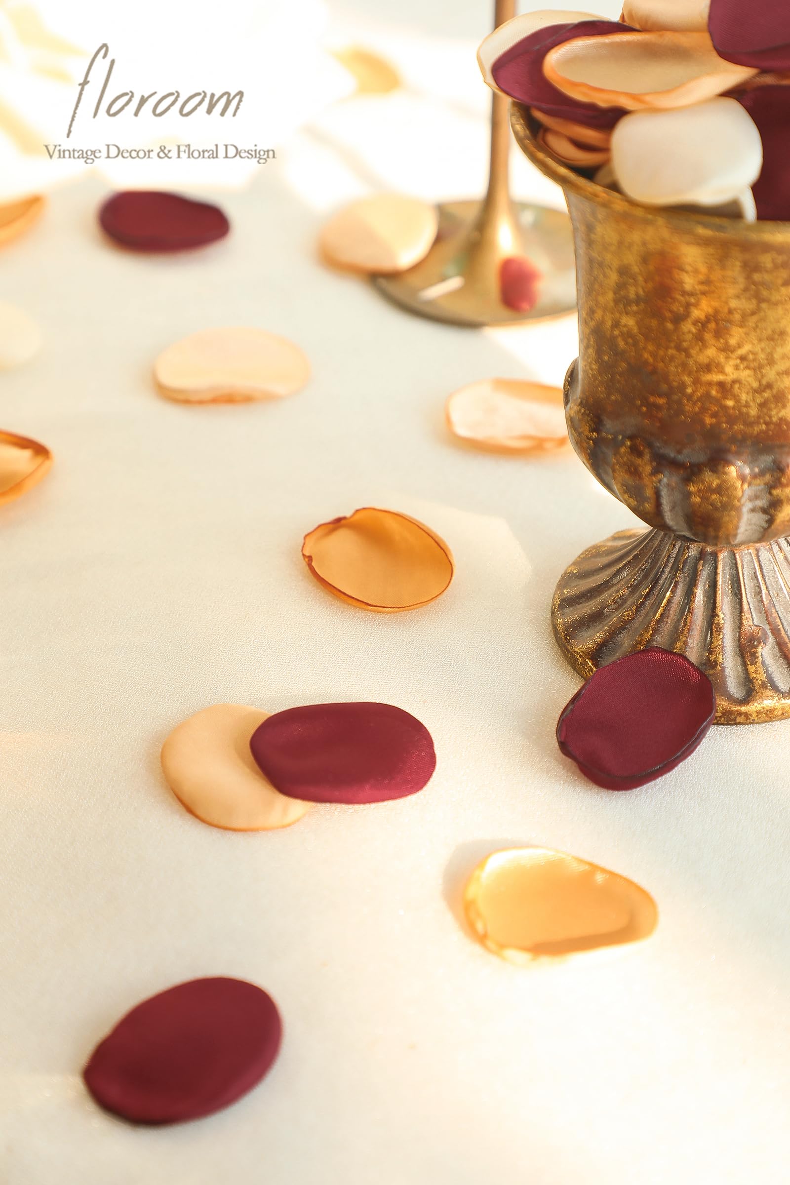 ❤️Color Details: Burgundy/ French Yellow/ Champagne/ Cream. This color combo is designed by Floroom Studio. We also offer solid color petal packs for free combination, enabling you to craft specific accessories matching your wedding decoration.